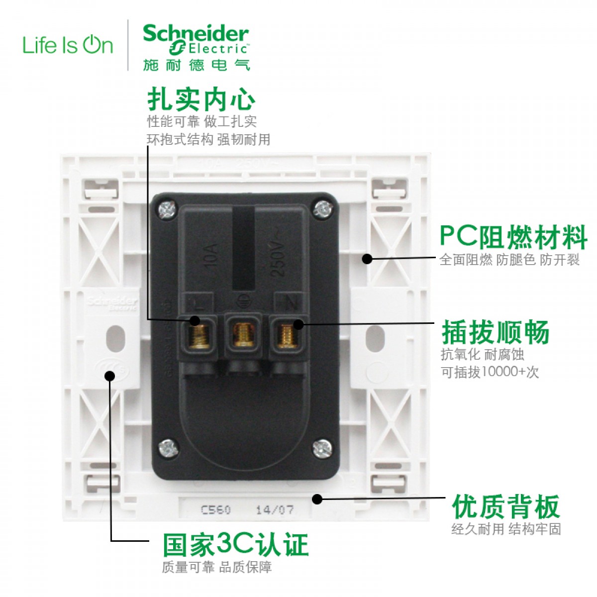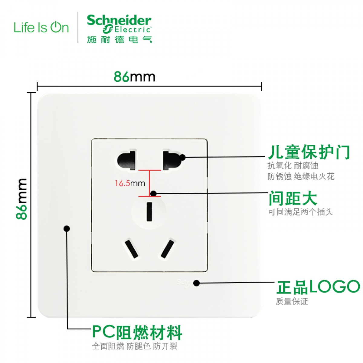 商品名称:施耐德 开关插座面板C86系列白色C560二三插五孔插座墙壁电源插座