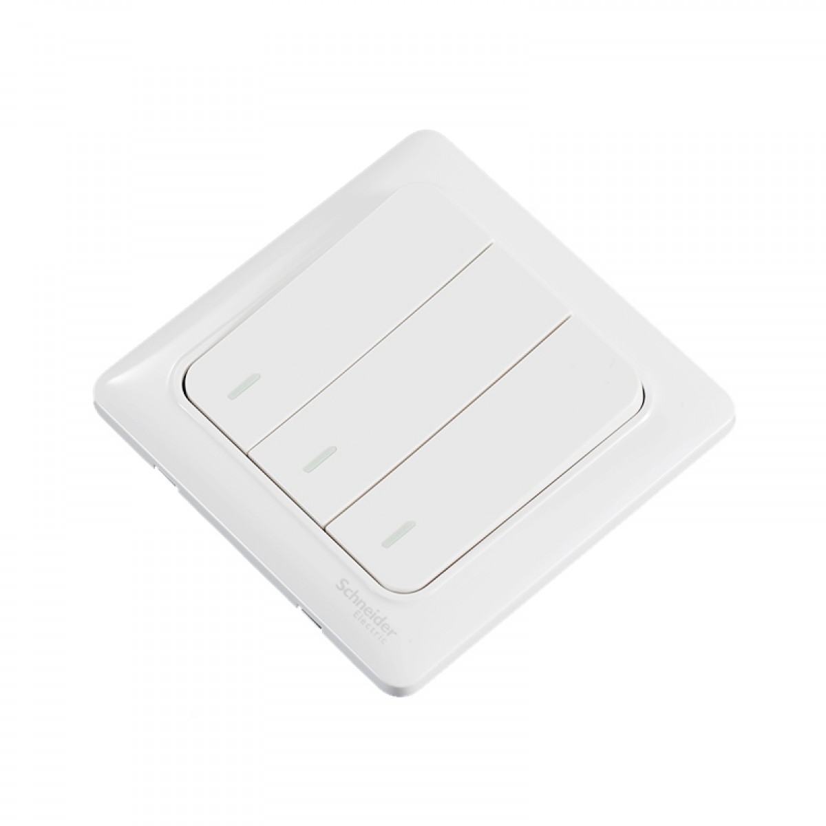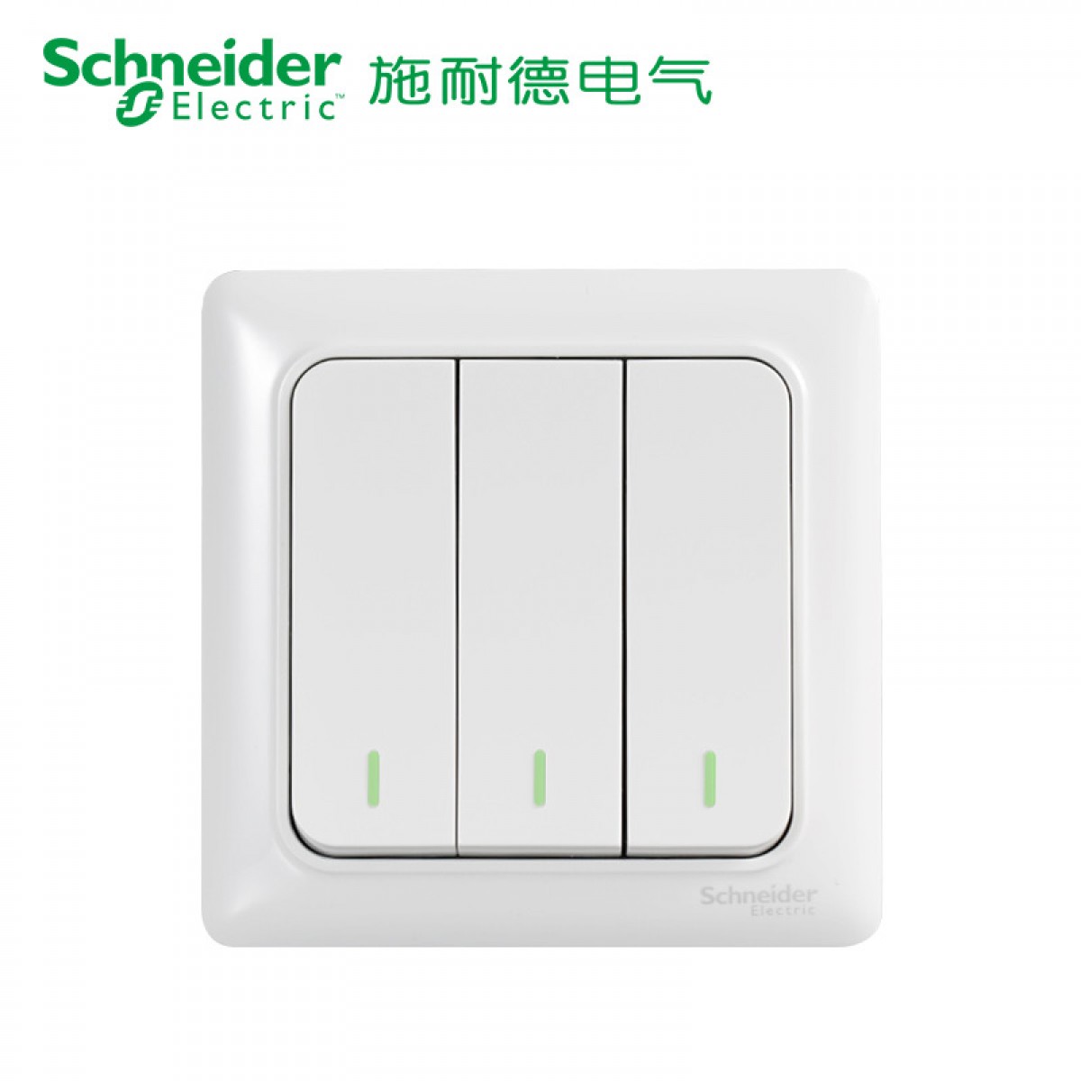 施耐德 电气 三开单控 三位三联 家用墙壁开关插座面板10A 睿意白