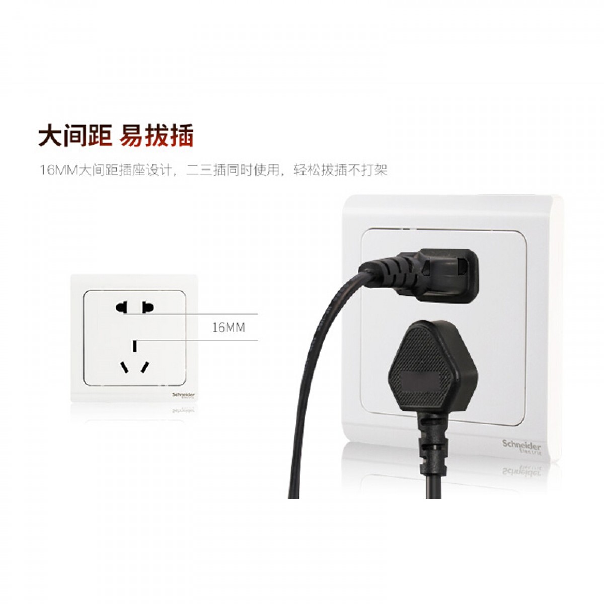 施耐德 开关插座面板二三插5五孔墙壁插座施耐德轻逸白