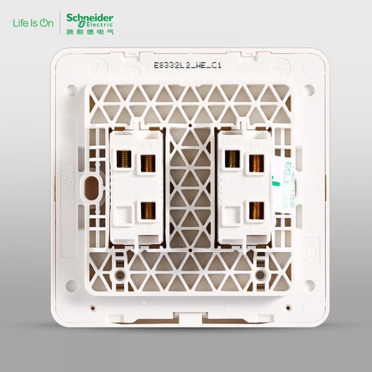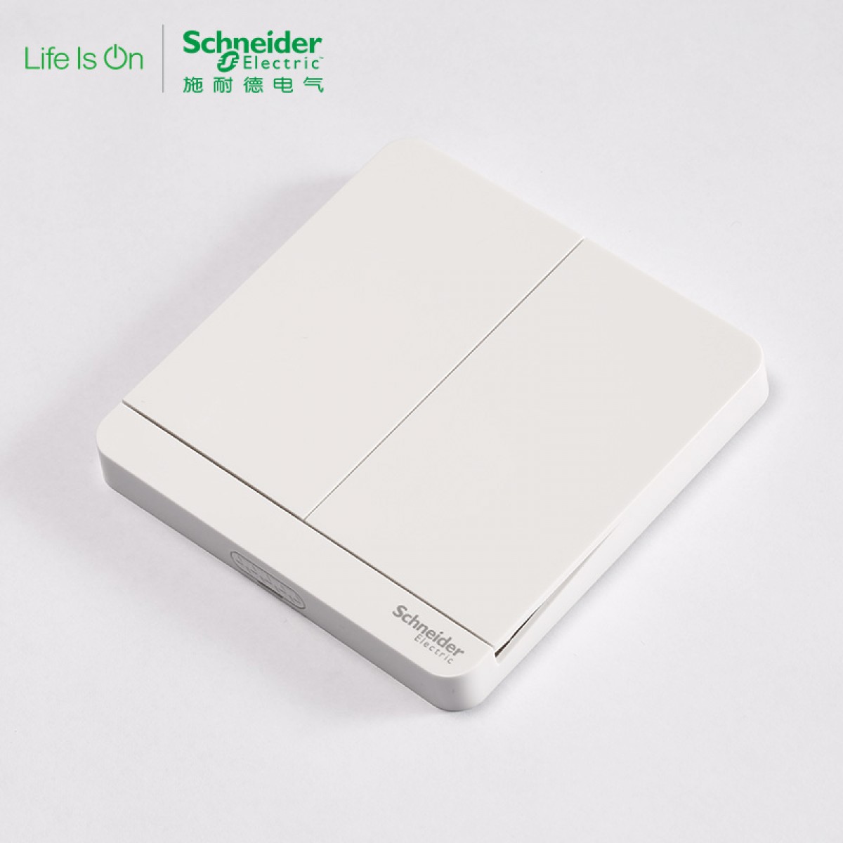 施耐德 电气 二位二开双联单控 电源插座开关面板16A 绎尚镜瓷白