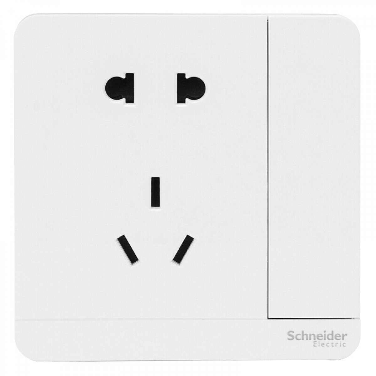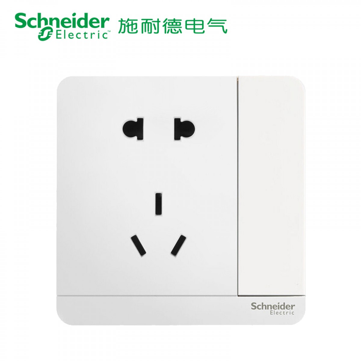 施耐德 电气 带开关二三插一开五孔插座 插座面板10A 绎尚镜瓷白