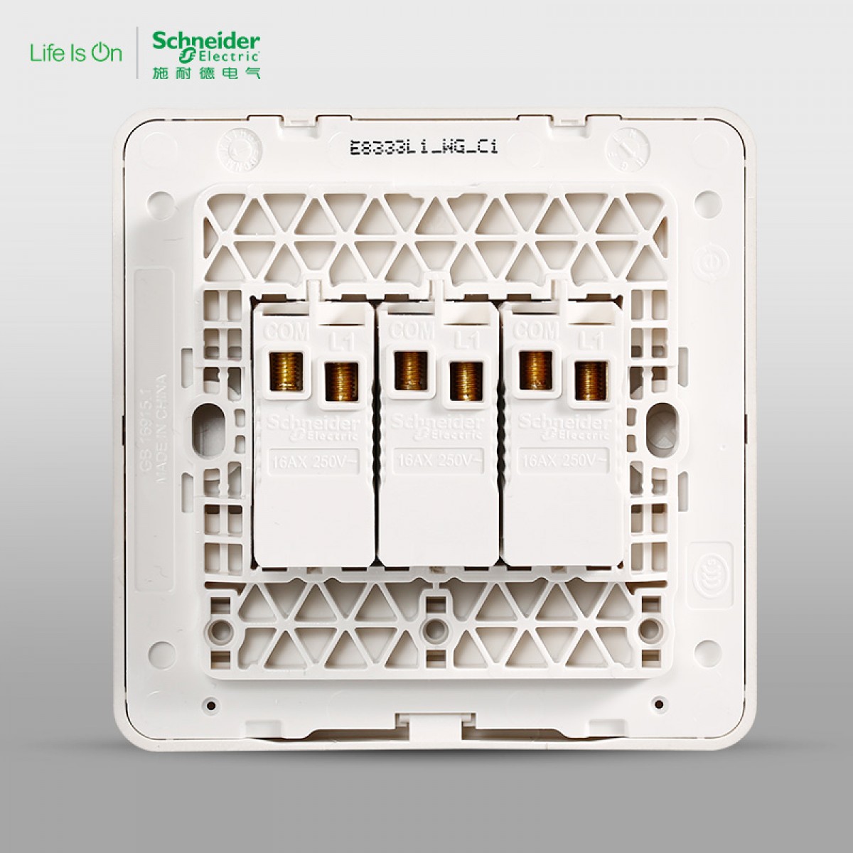施耐德 三位三开三联双控 开关面板16A 绎尚薄暮金