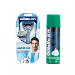 吉列 锋隐剃须刀架银色含1刀头+薄荷刮胡泡沫膏210g润滑软化