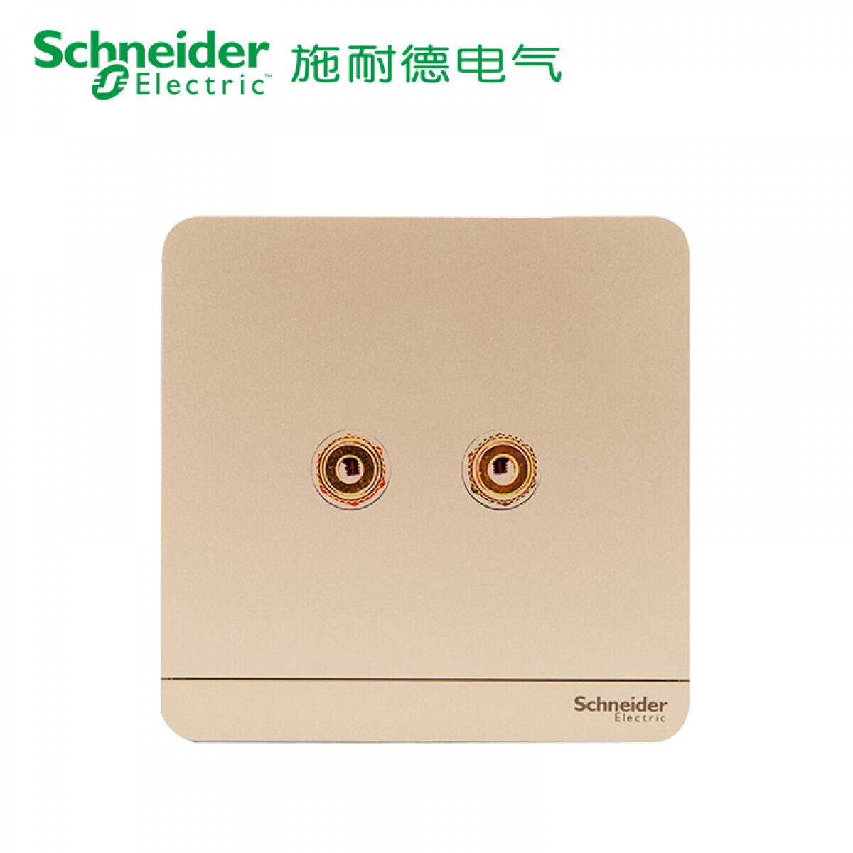 施耐德 单联二孔音响插座 音箱弱电面板 绎尚金