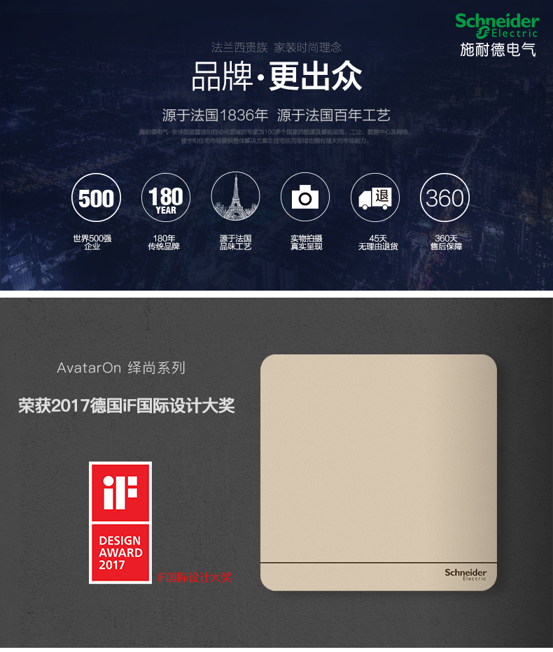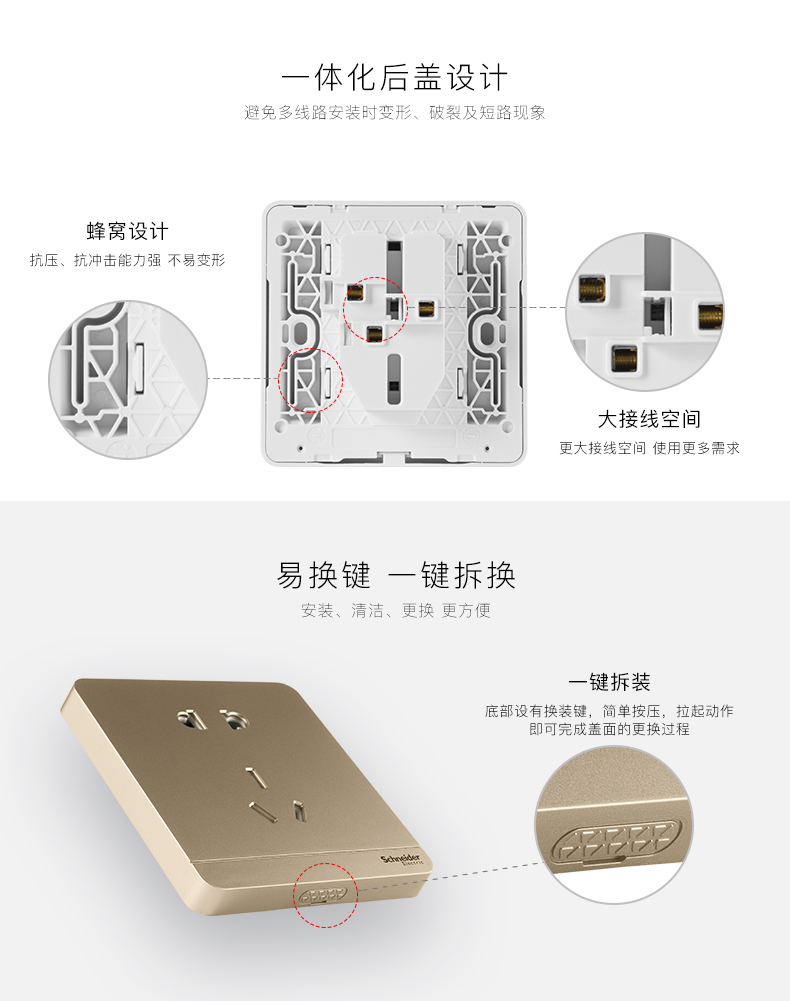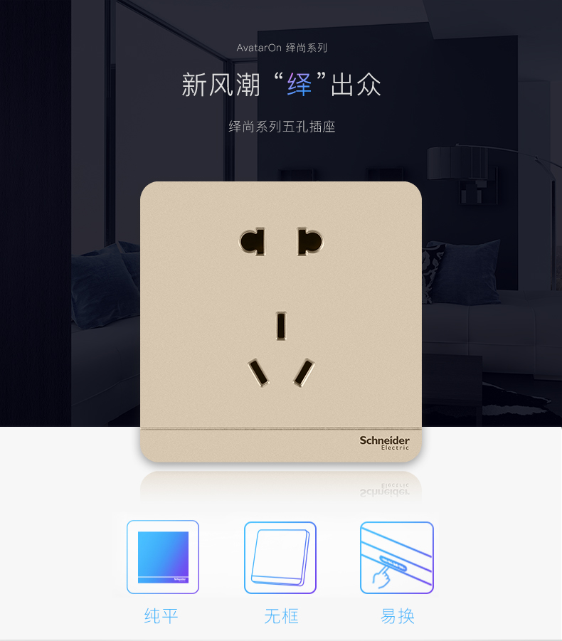 商品名称:施耐德 四位四联四开双控开关面板16A 绎尚薄暮金