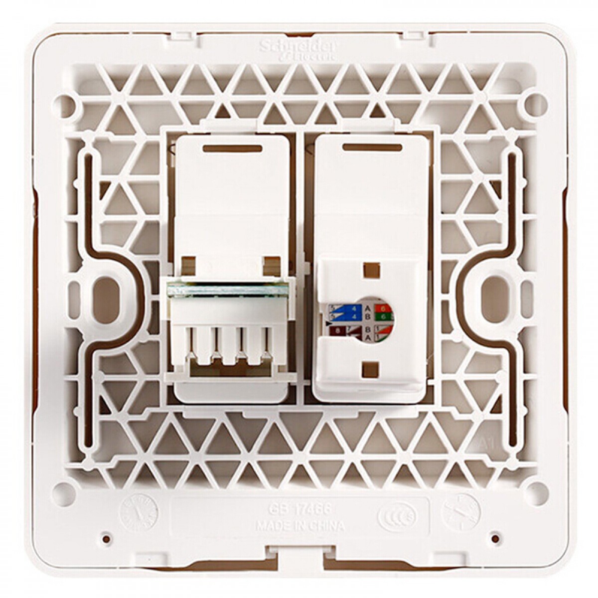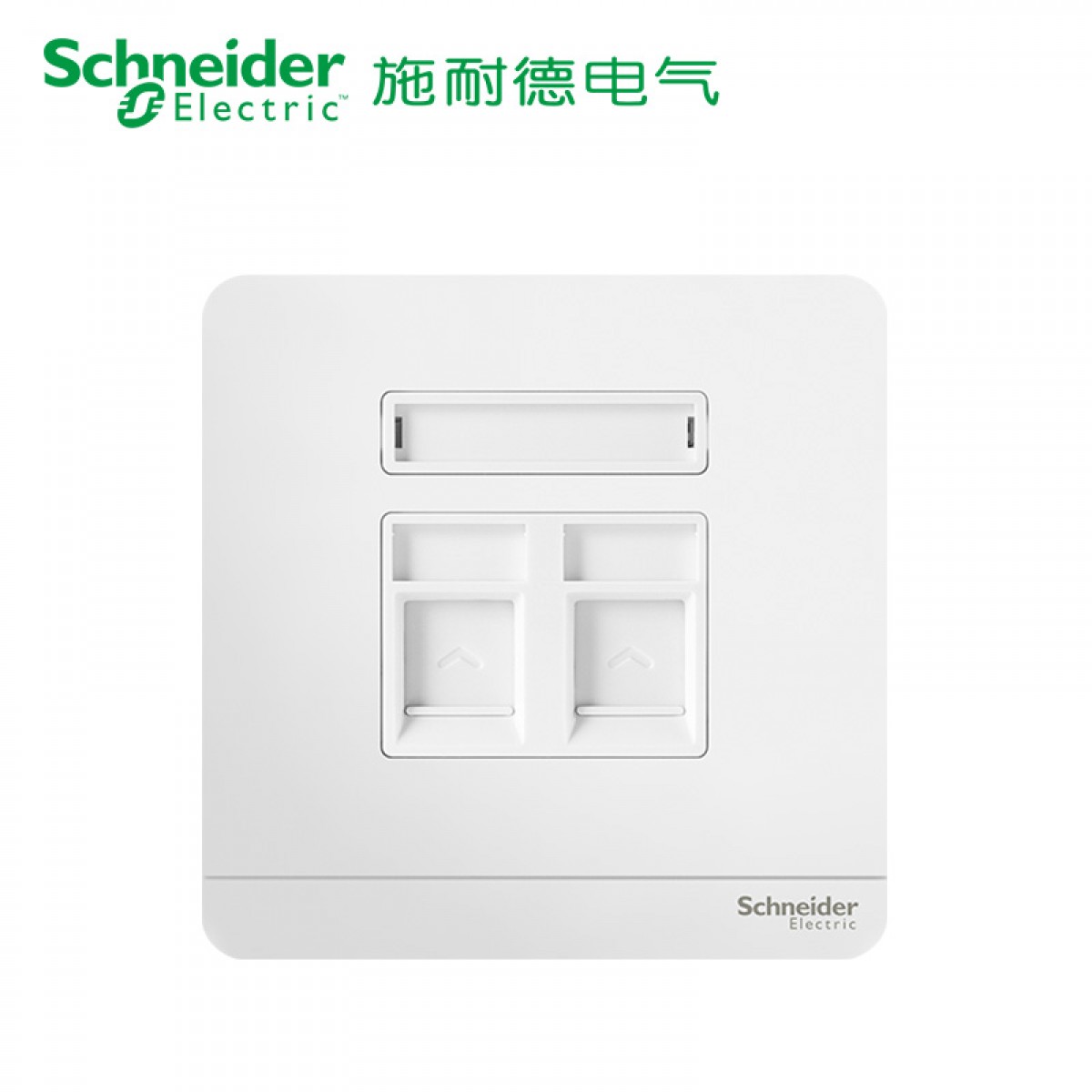 施耐德 电气开关插座 电话+电脑插座 墙壁网络网线面板 绎尚镜瓷白