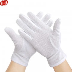 谋福 白色点胶防滑手套 棉毛作业点塑劳保 颗粒胶点礼仪司机工作