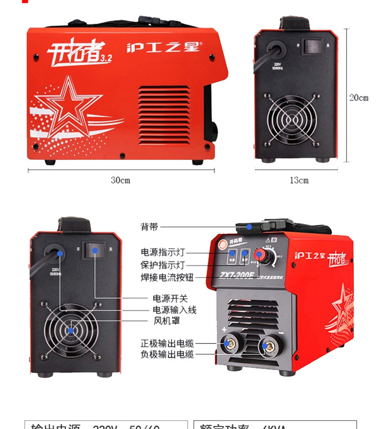 商品名称:沪工之星 电焊机家用小型全铜220v便携手工小型宽电压逆变 ZX7-200E