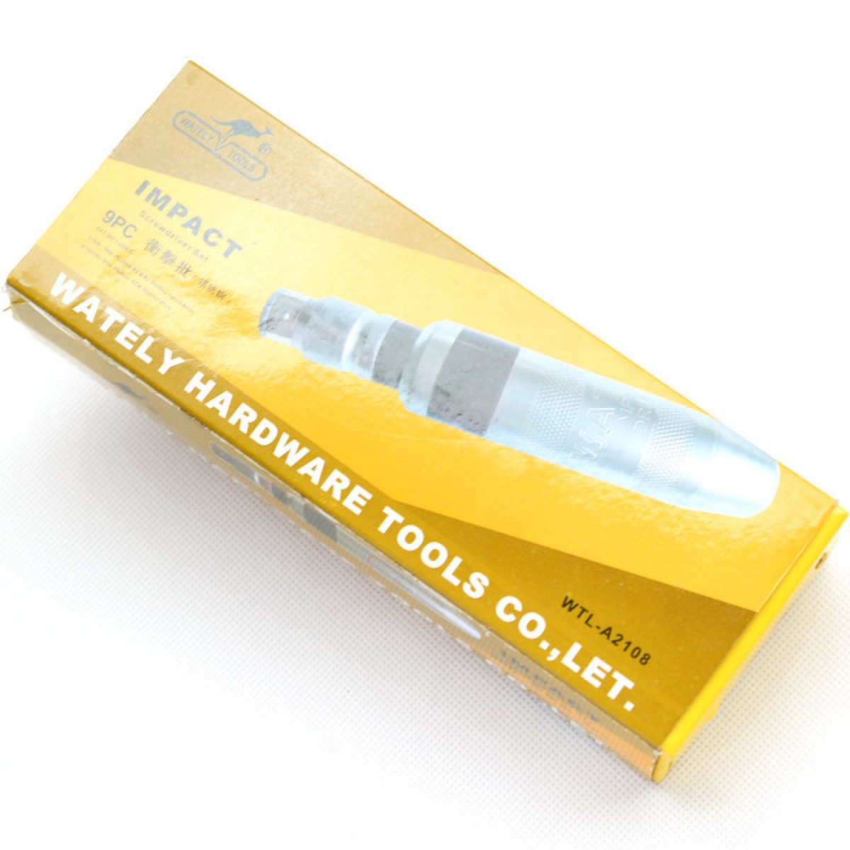 威特力9PC铬钒钢撞批规格:3个一字、3个十字、2个内六角批头材质:铬钒钢1、优质铬钒钢CR-V制造,坚固耐用,铁盒装携带方便2、是机修、汽修、摩托维修等多方面必备的好工具