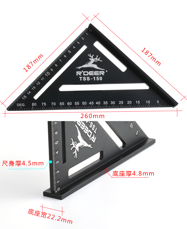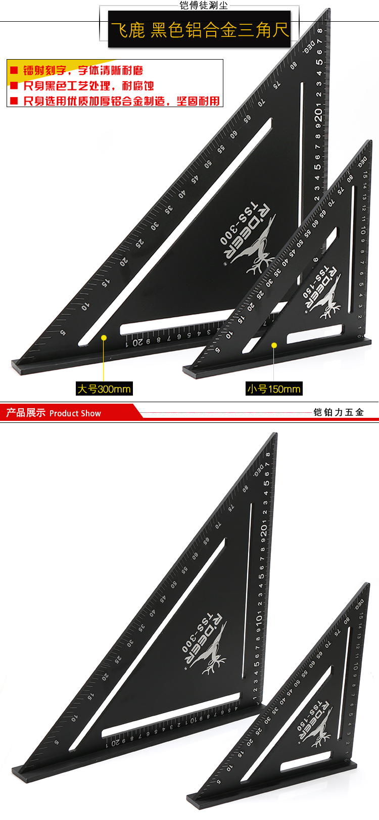 商品名称:飞鹿 三角尺90度宽底加厚角尺铝合金三角尺木工直角尺45度角尺