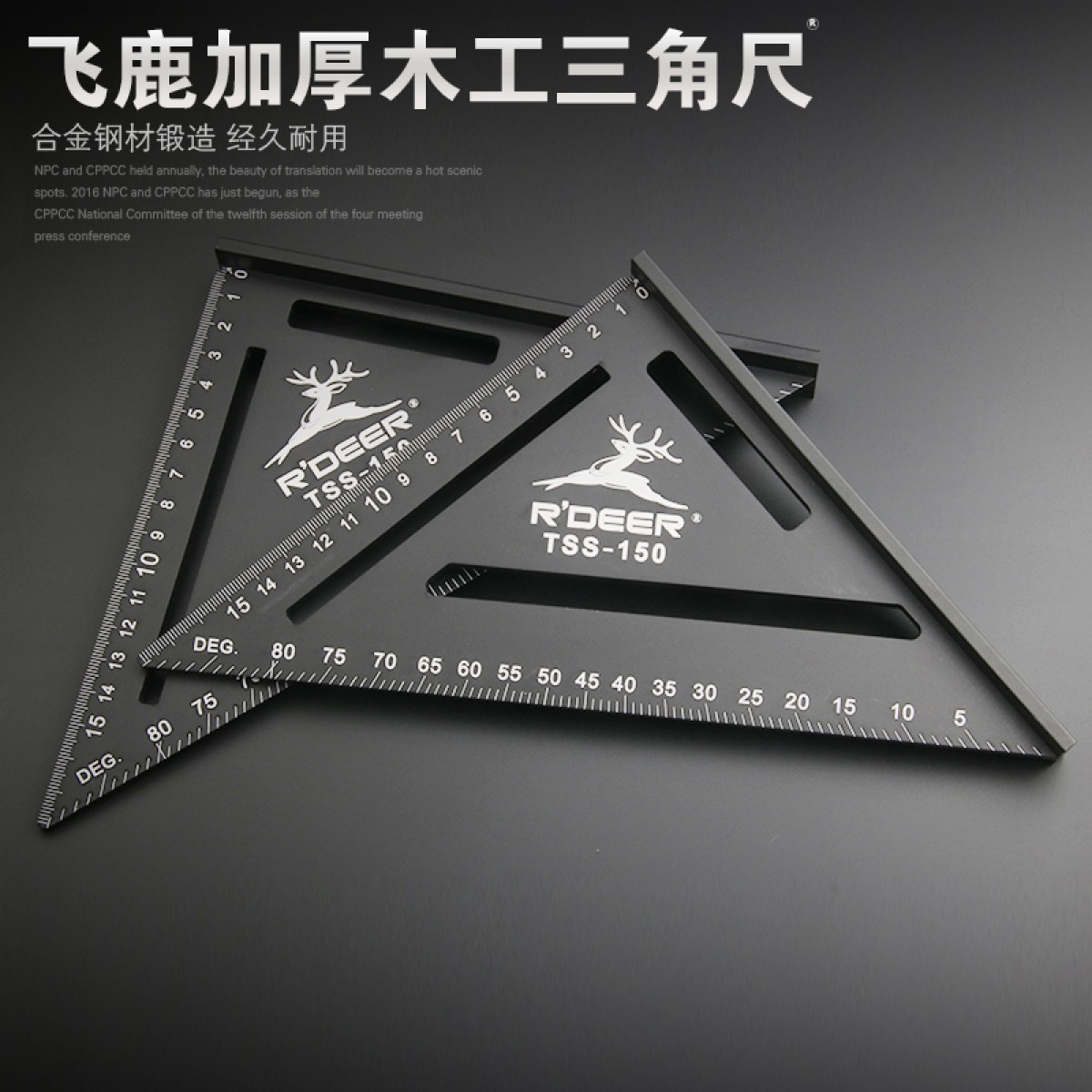 飞鹿 三角尺90度宽底加厚角尺铝合金三角尺木工直角尺45度角尺