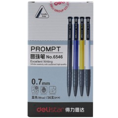 得力 36支装圆珠笔用品6546原珠笔蓝色油笔按动圆珠笔批发