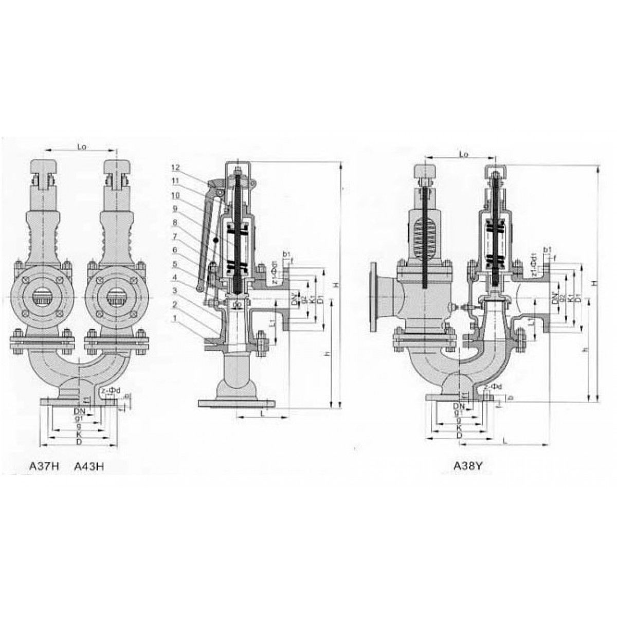 天正 铸钢双联弹簧式安全阀 A37H/Y/W-40C-DN65/80/100