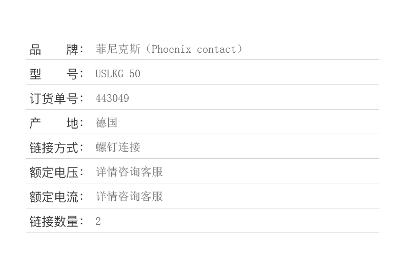 商品名称:菲尼克斯 接线端子螺钉连接50 平方 USLKG 50-0443049