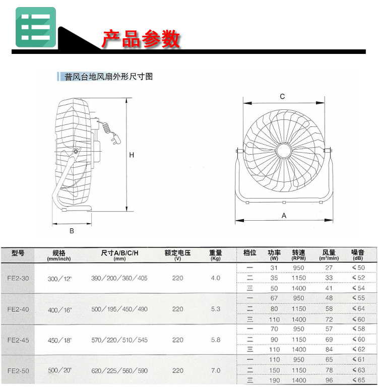 商品名称:德通 普风系列商用20寸电风扇 FE2-50