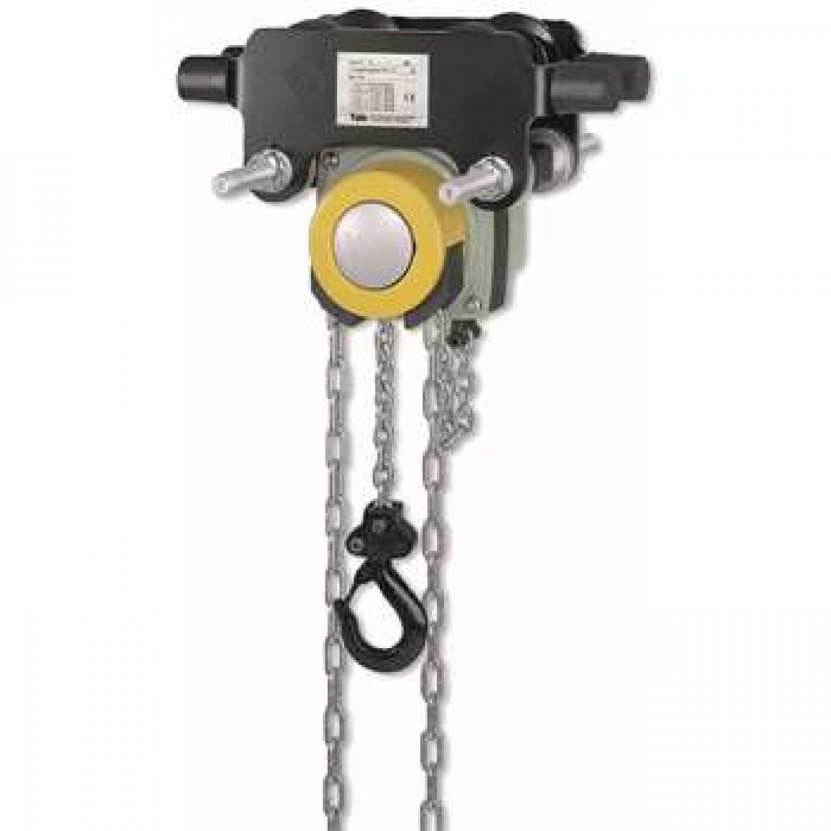 标准提升高度(m) : 3, 链条数 : 1, 起升速度(m/min) : -, 轮缘厚度(mm) : 19, 材质 : 钢材, 表面处理 : 粉末涂料, 颜色 : 黑色黄色, 噪音等级(dBA) : 40, 标准 : -, 认证 : CE