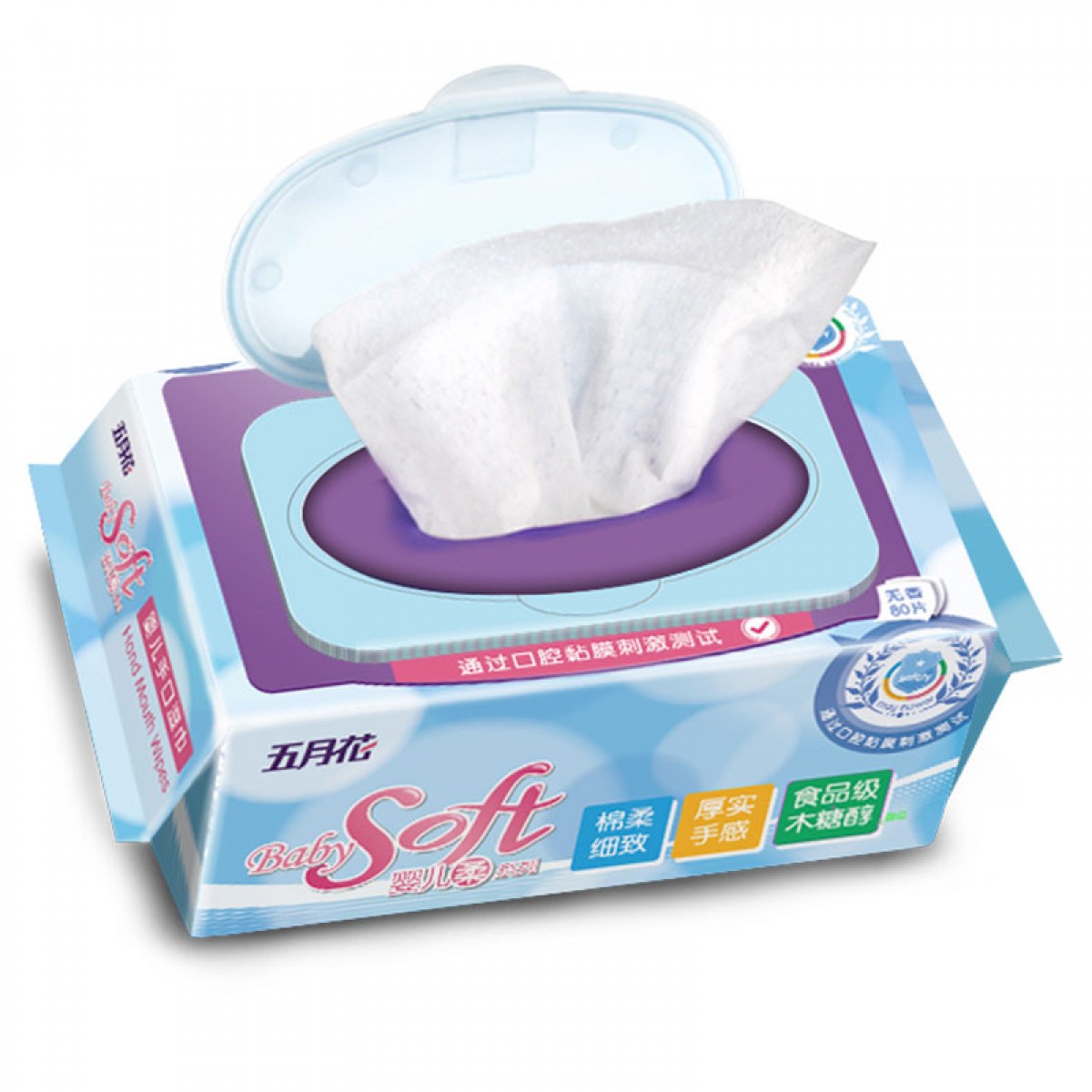 商品名称:五月花 婴儿湿巾80片4包新生婴儿湿纸巾手口屁屁专用大包带盖无香