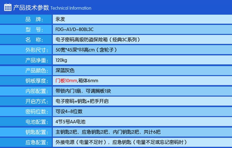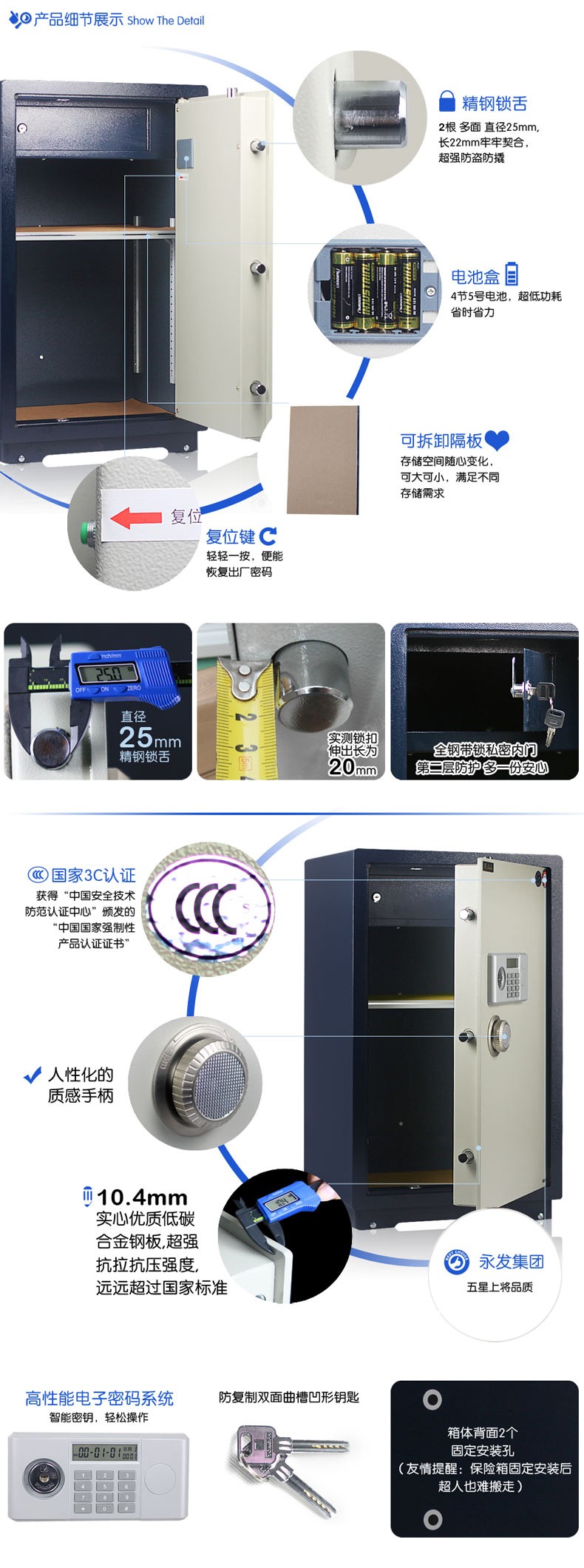 商品名称:永发 3C全钢电子入墙大型保险柜保险箱 FDG-A1/D-80BL3C