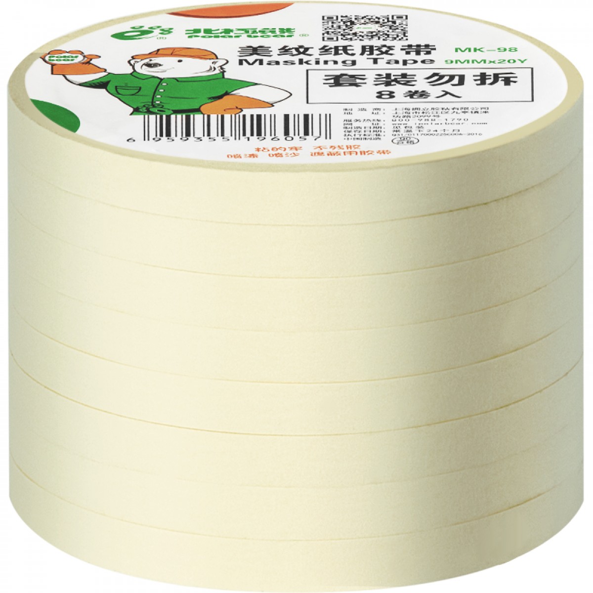 商品名称:北极熊 美纹纸胶带易撕不留痕汽车喷漆美术生专用贴边瓷砖美缝手撕和纸胶布装修MK-98MK-126MK-184 9mm*20y