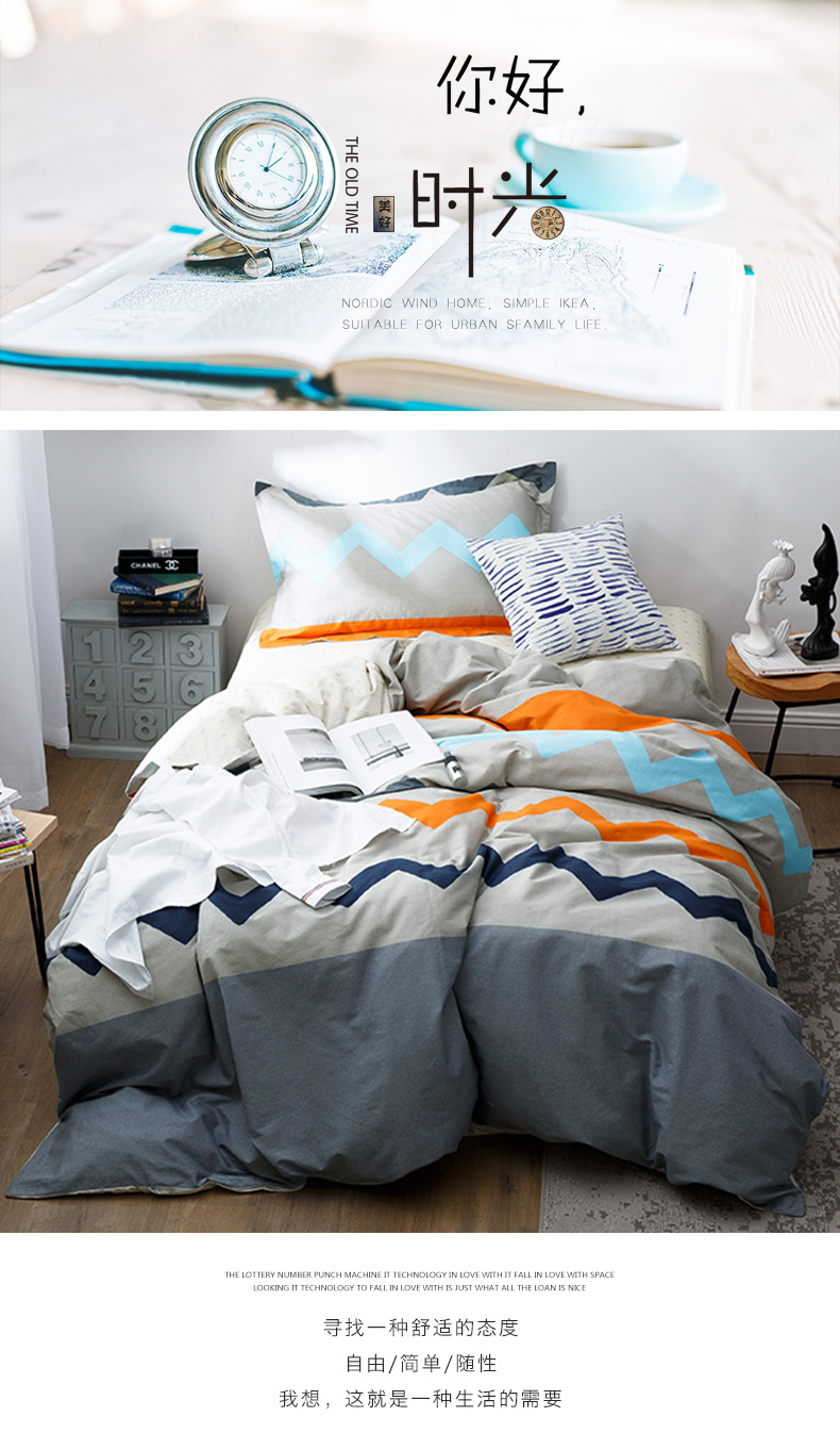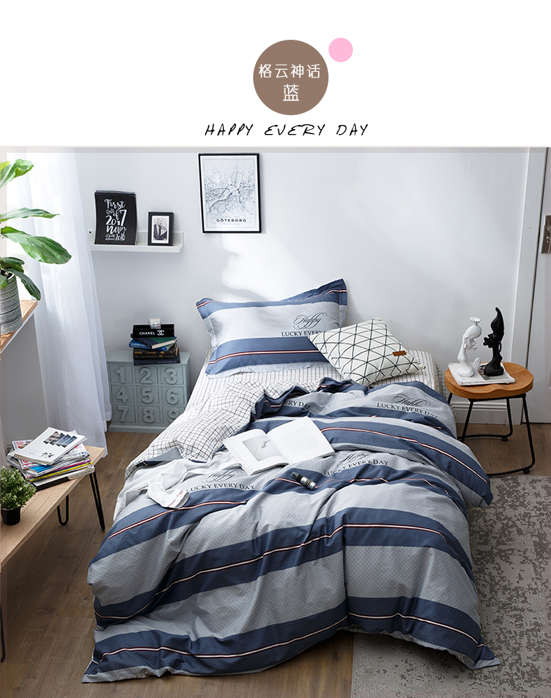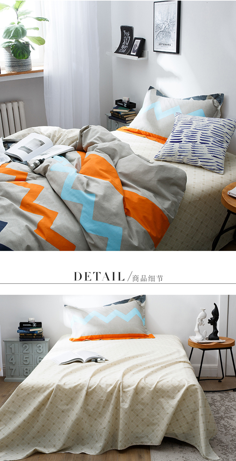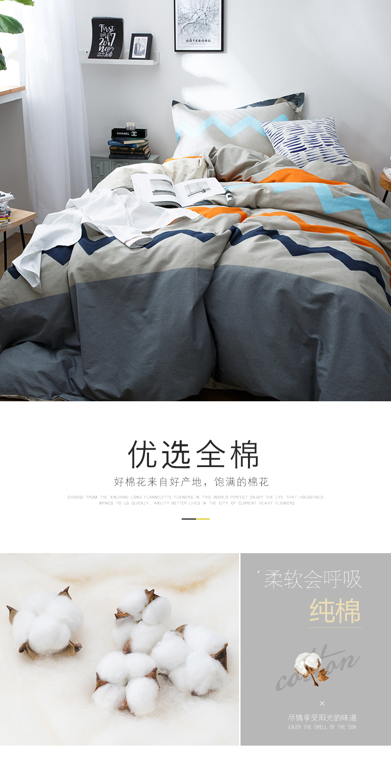 国产 全棉三件套1.2m床单人学生宿舍纯棉简约被套