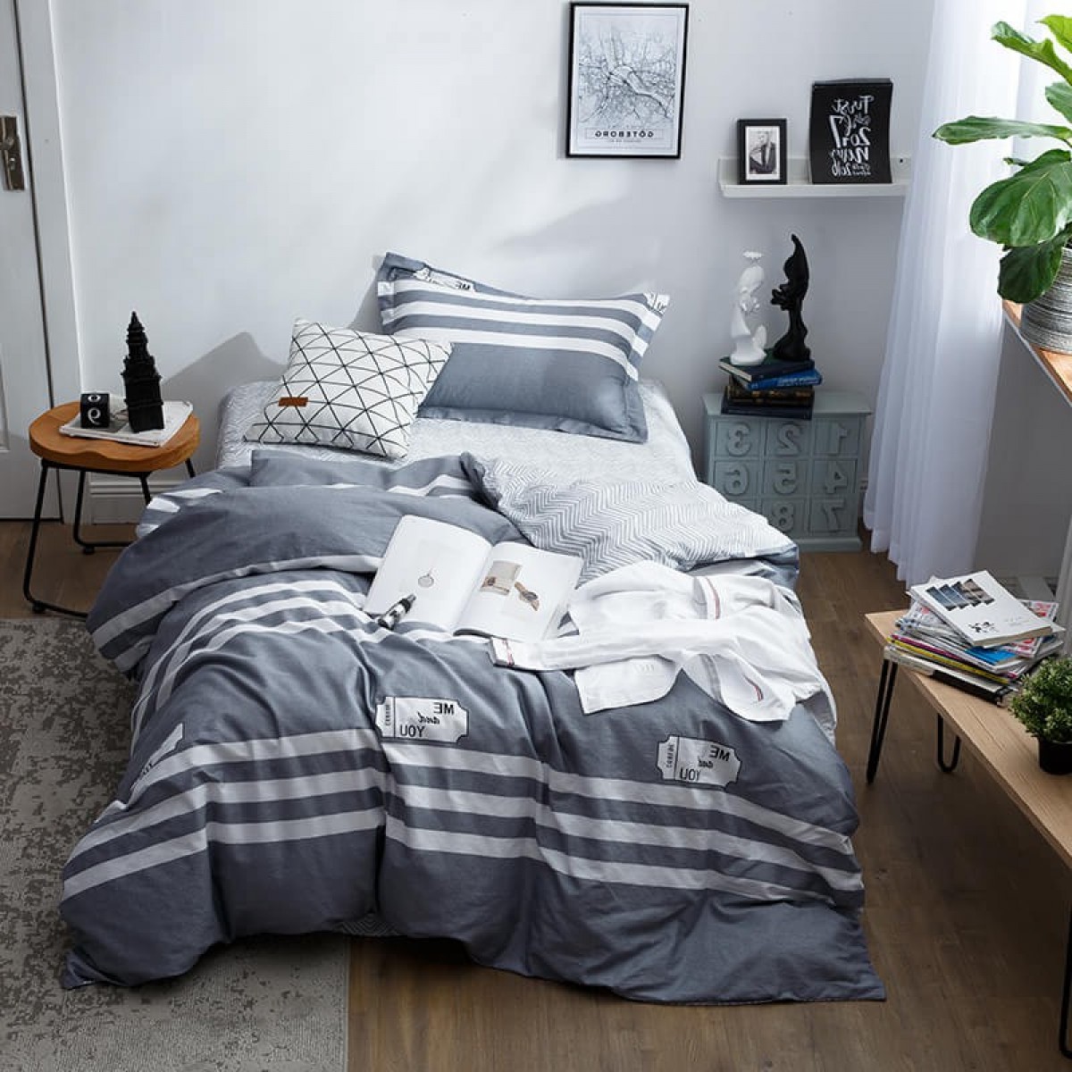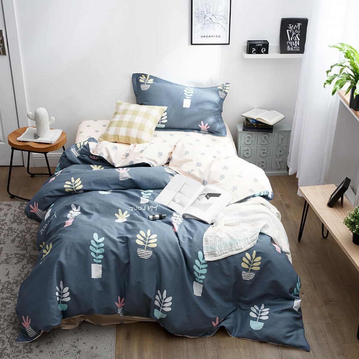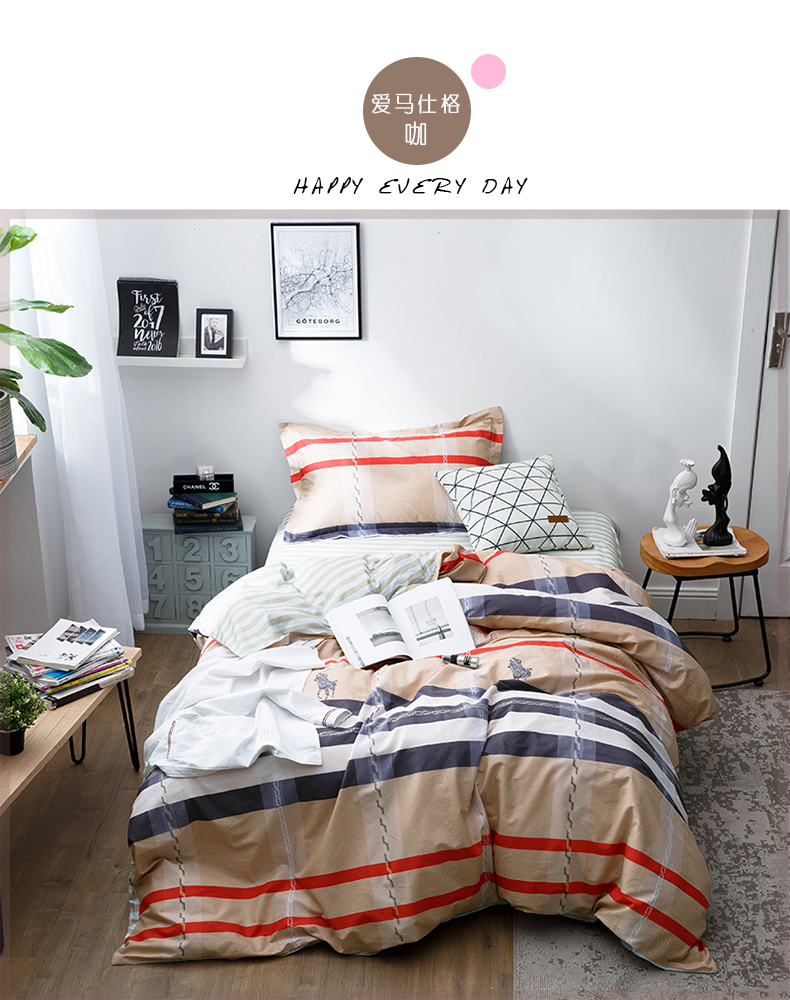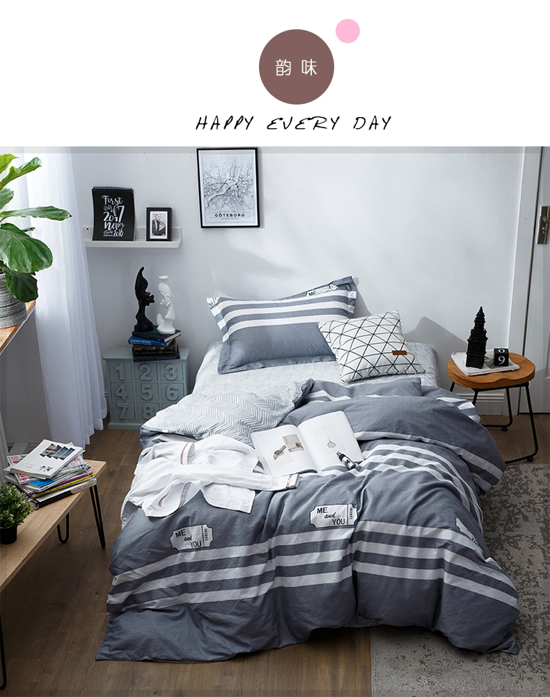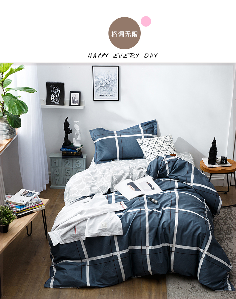 国产 全棉三件套1.2m床单人学生宿舍纯棉简约被套