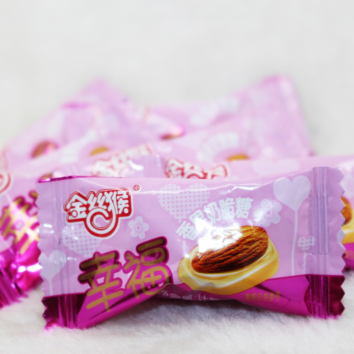 商品名称:金丝猴 幸福香果奶脆奶酥硬糖 结婚喜糖 散装500g扁桃仁
