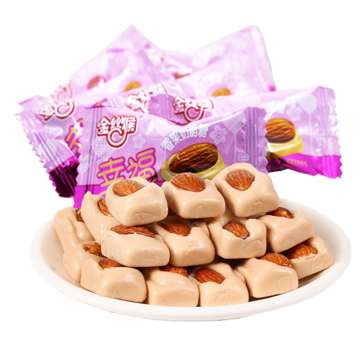 金丝猴 幸福香果奶脆奶酥硬糖 结婚喜糖 散装500g扁桃仁