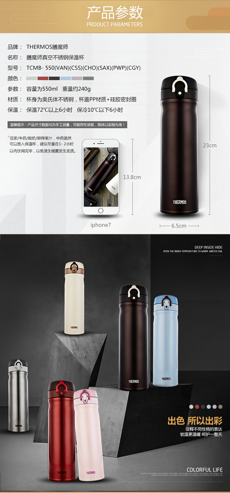商品名称:膳魔师 不锈钢保温杯 男女商务儿童卡通套装组TCMB-550+FDX-350