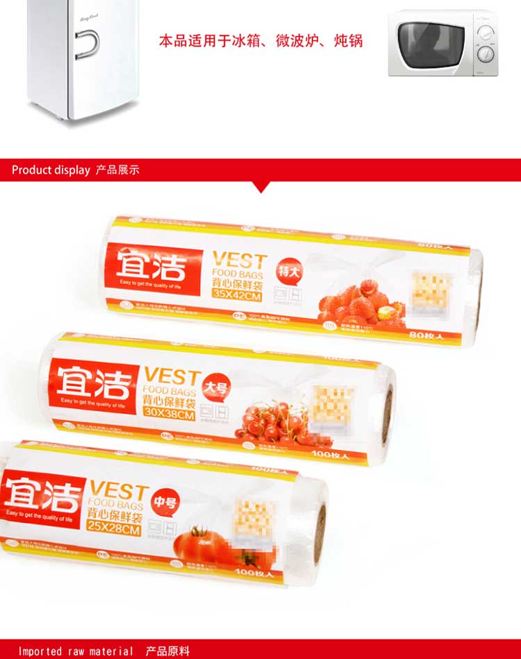 商品名称:宜洁 背心式一次性保鲜袋加厚点断式食品果蔬袋手撕袋子大中小号