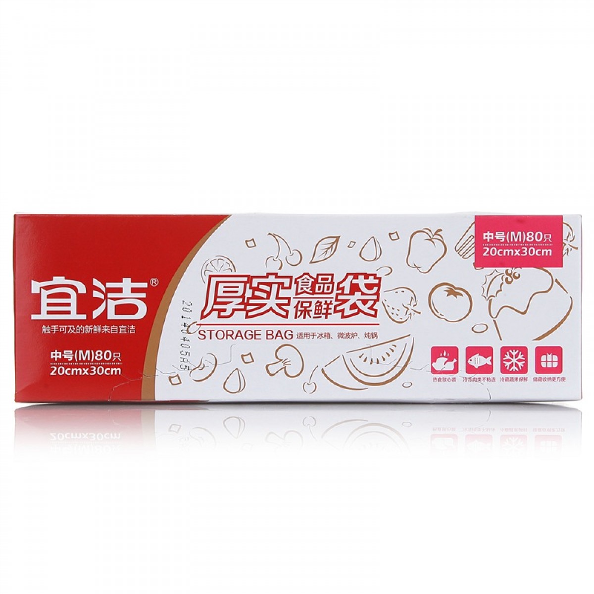 商品名称:宜洁 盒装保鲜袋家用加厚食品级冰箱水果食物一次性pe保鲜袋抽取式