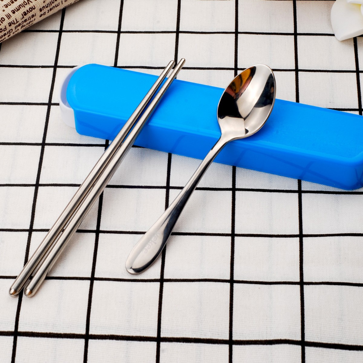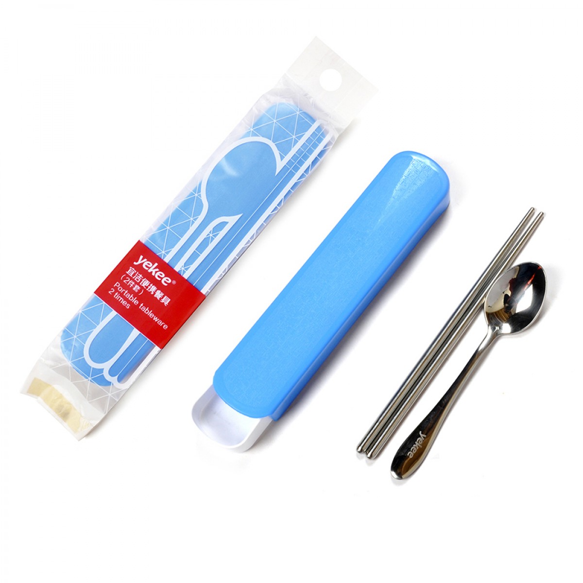 宜洁 不锈钢筷子勺子便携餐具实心成人学生户外旅行套装两件套