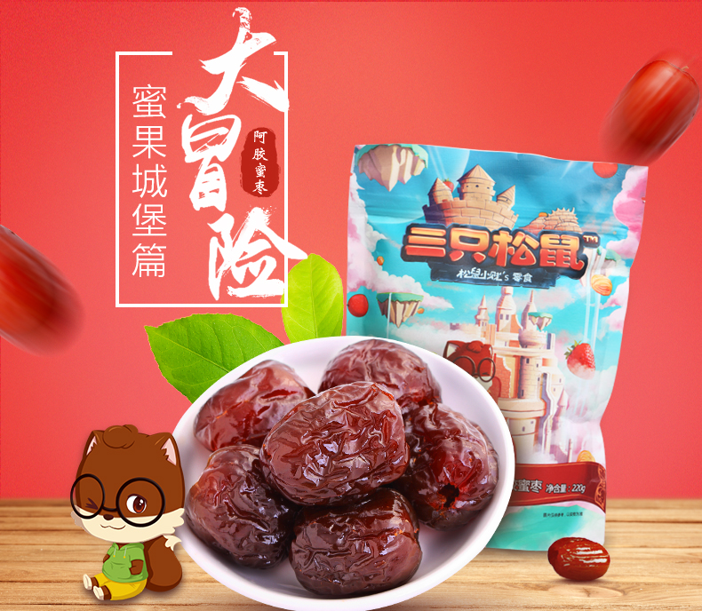 商品名称:三只松鼠 琥珀阿胶蜜枣220g 山东琥珀阿胶红枣无核蜂蜜枣