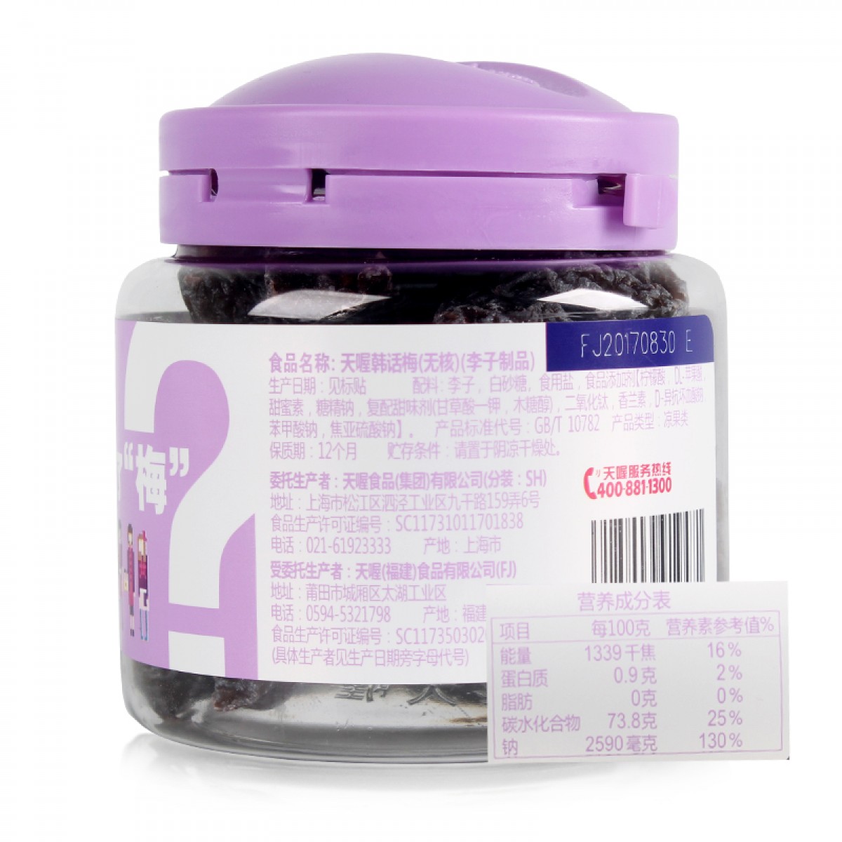 商品名称:天喔主意 无核话梅梅子蜜饯果脯 天喔韩话梅160g*3罐 休闲零食