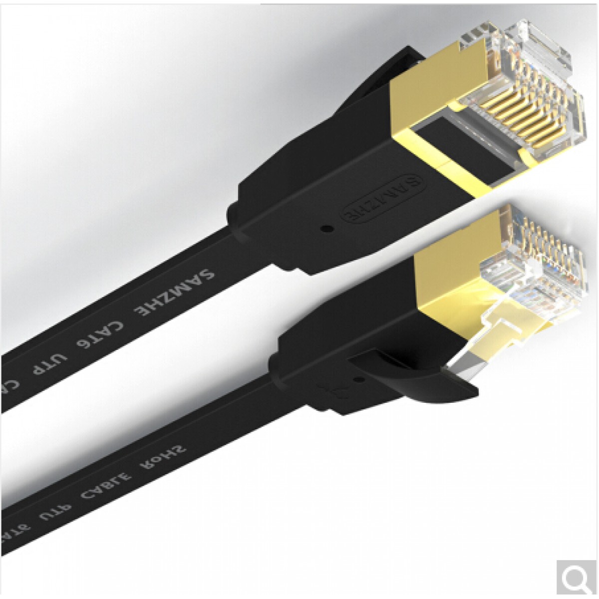 山泽(SAMZHE)6030PHS 六类扁平网线 无氧铜千兆镀金金属头高速电脑网线 cat6类超薄黑色 3米