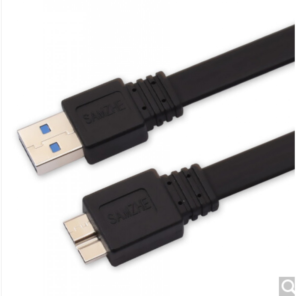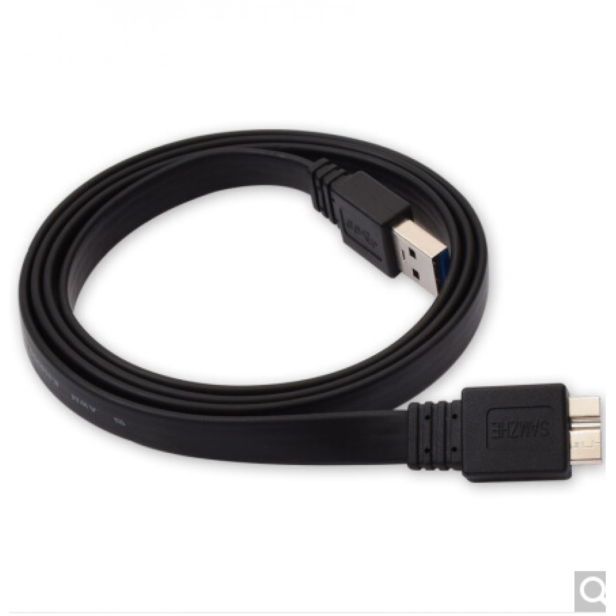 山泽(SAMZHE) AP-410 高速USB3.0移动硬盘数据线 AM/Micro B 手机数据充电连接线 扁平黑色1米