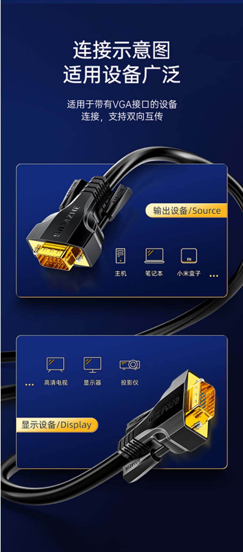 商品名称:☆山泽 SAMZHE VM-9050 高清双磁环VGA线 3+9线芯 针/针 电脑投影仪显示器视频线数据信号线 5米