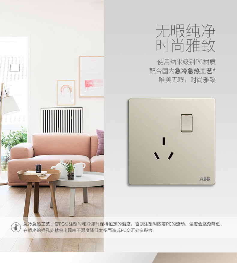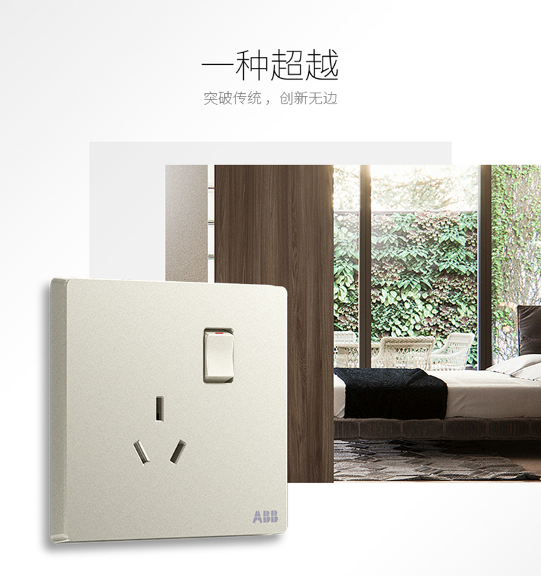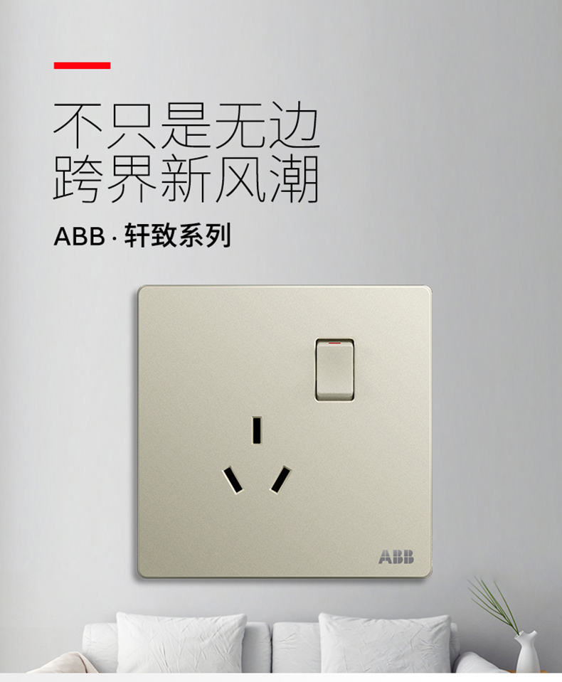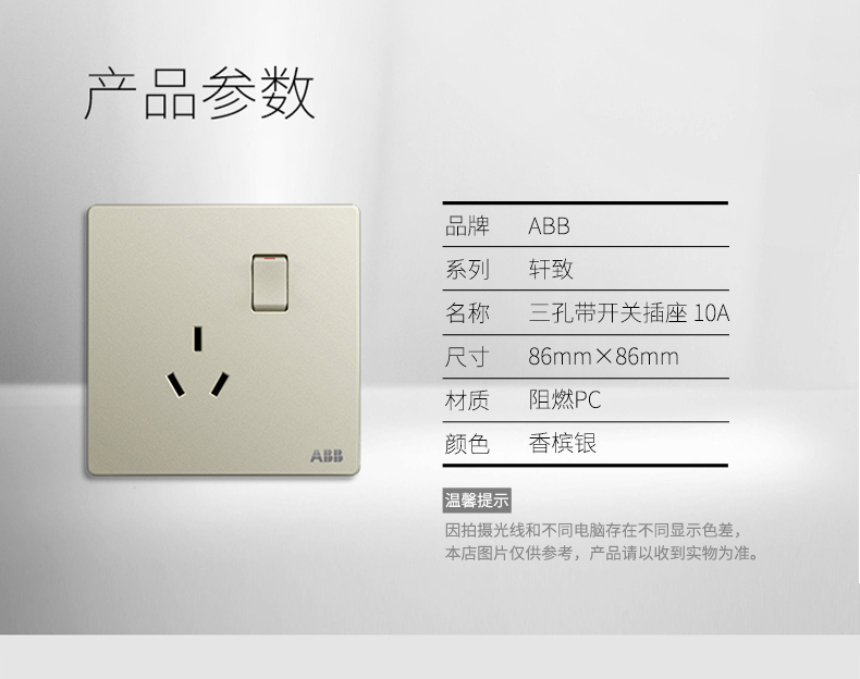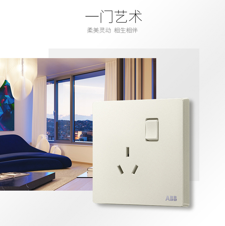 商品名称:ABB 开关插座面板一位一开三孔带开关插座10a三眼轩致银色AF223-CS