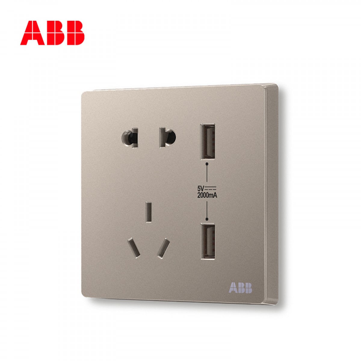 商品名称:ABB 开关插座 轩致无框 朝霞金 二位USB插座五孔墙壁插座AF293-PG