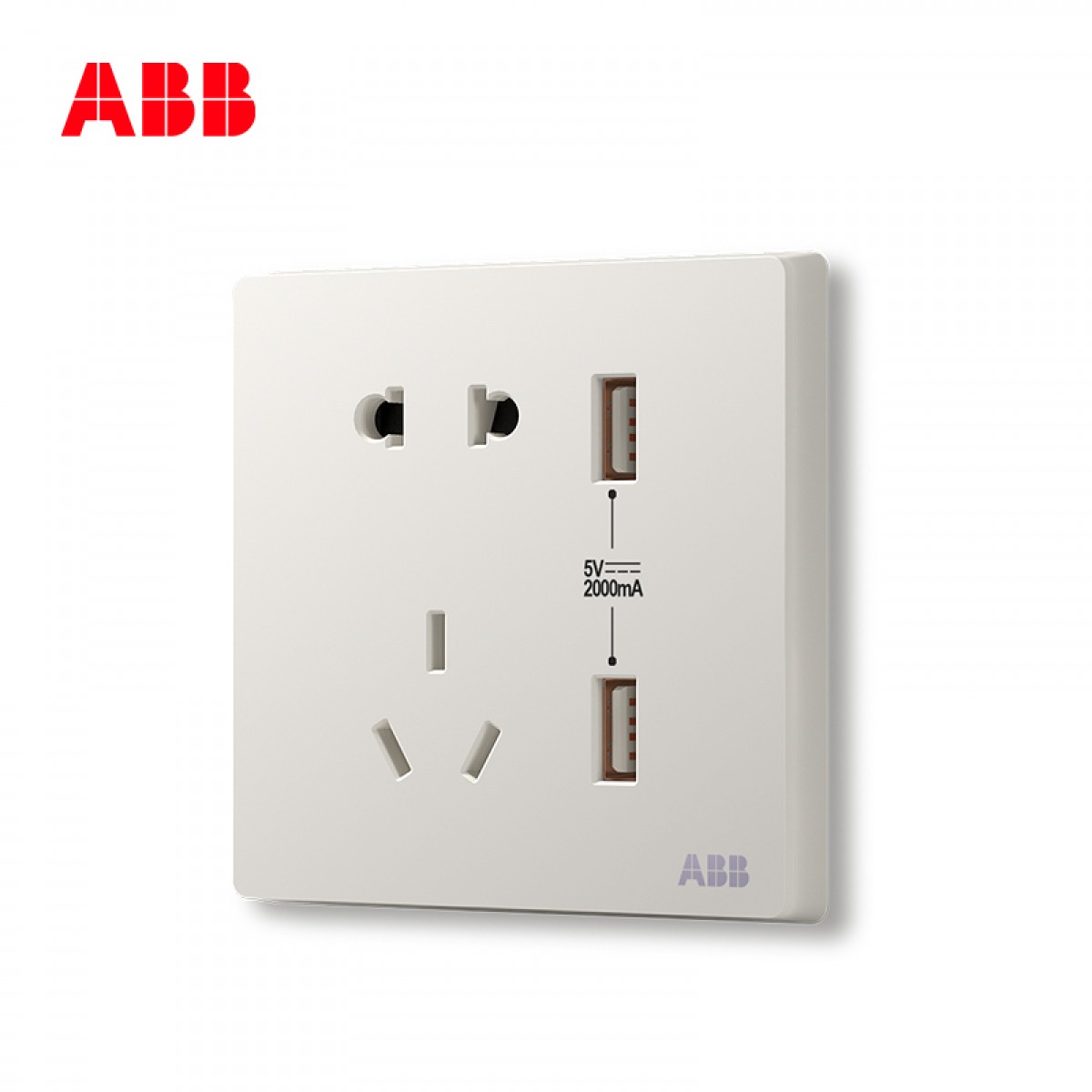 ABB 开关插座面板轩致无框雅典白色10A五孔带双USB充电二三插AF293
