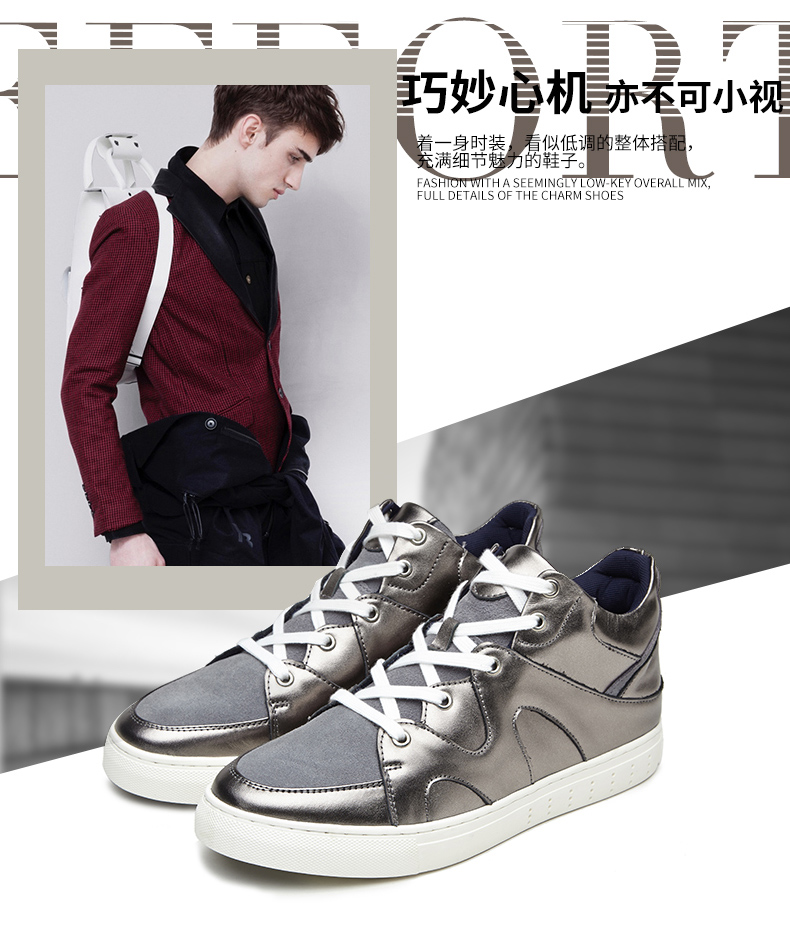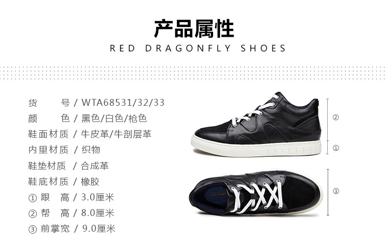商品名称:红蜻蜓 男鞋春季青春潮流韩版男士休闲皮鞋高帮板鞋男