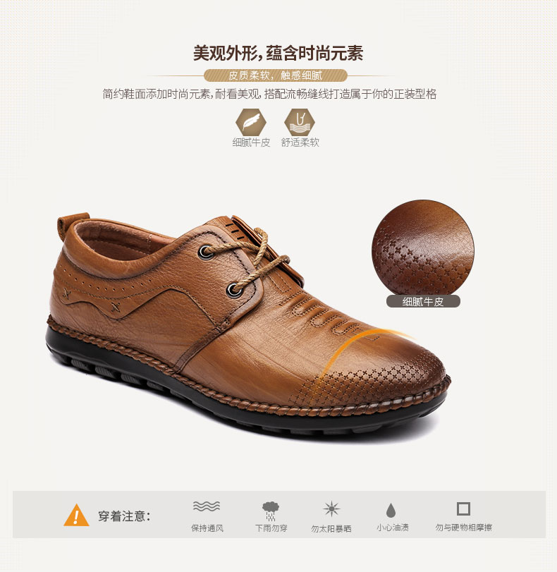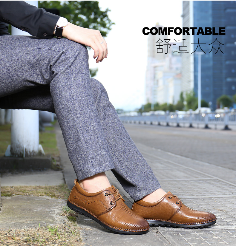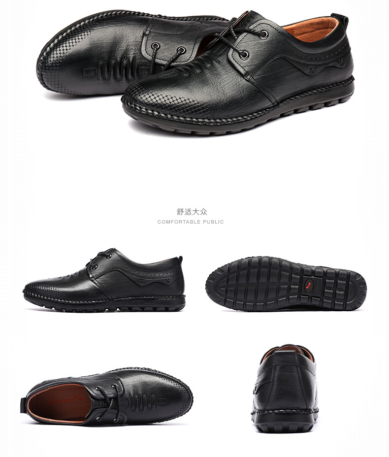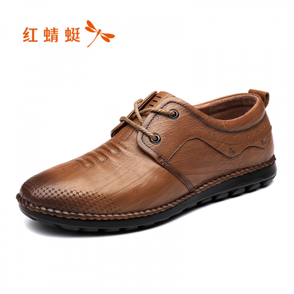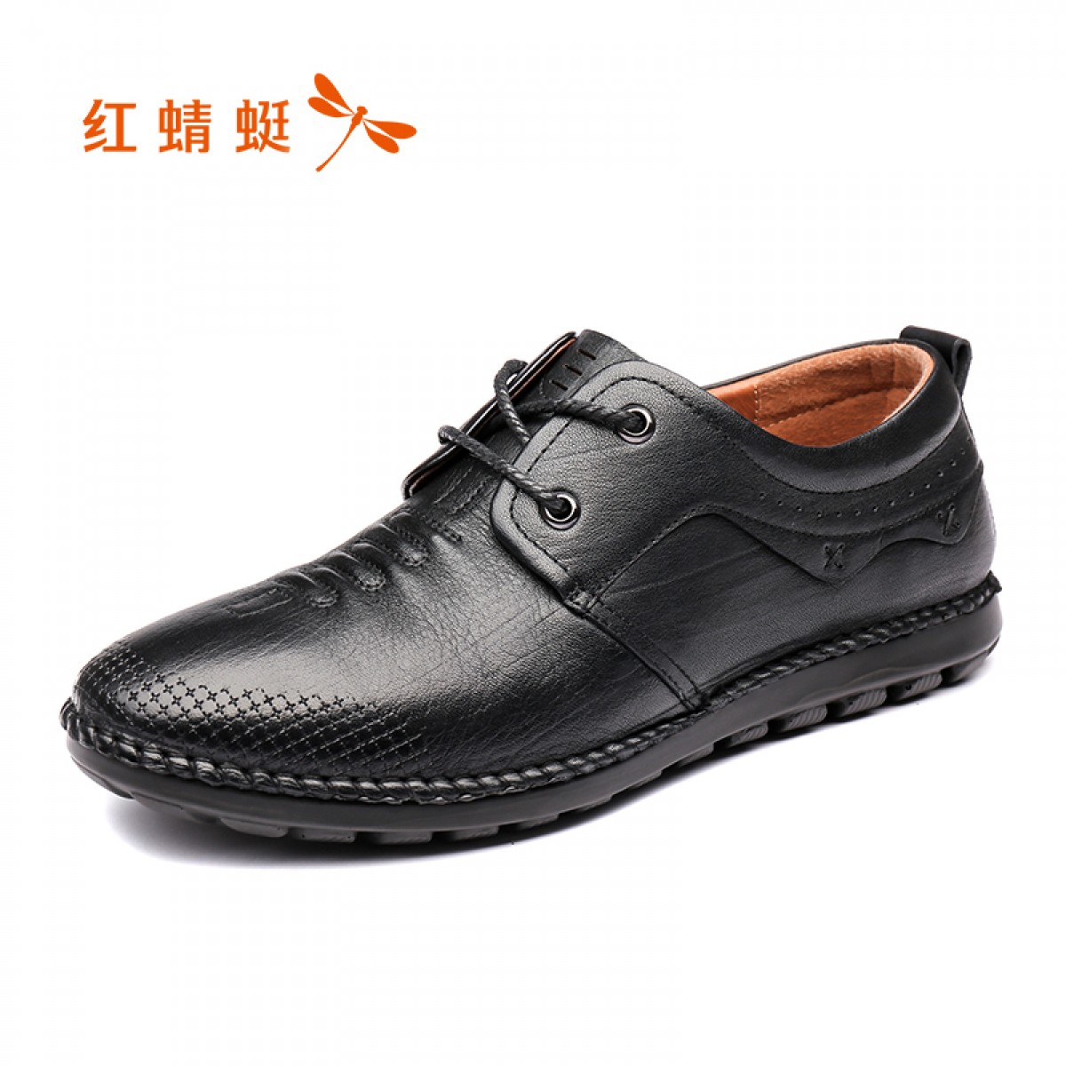 商品名称:红蜻蜓 男鞋新款潮流英伦透气皮鞋男真皮软底商务休闲系带鞋