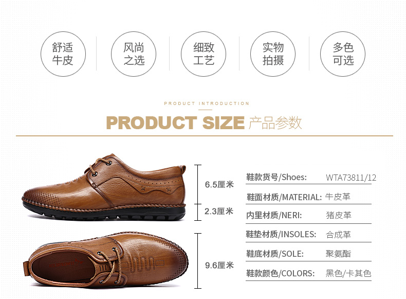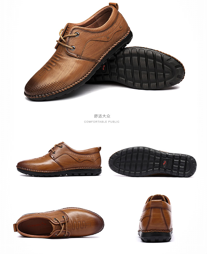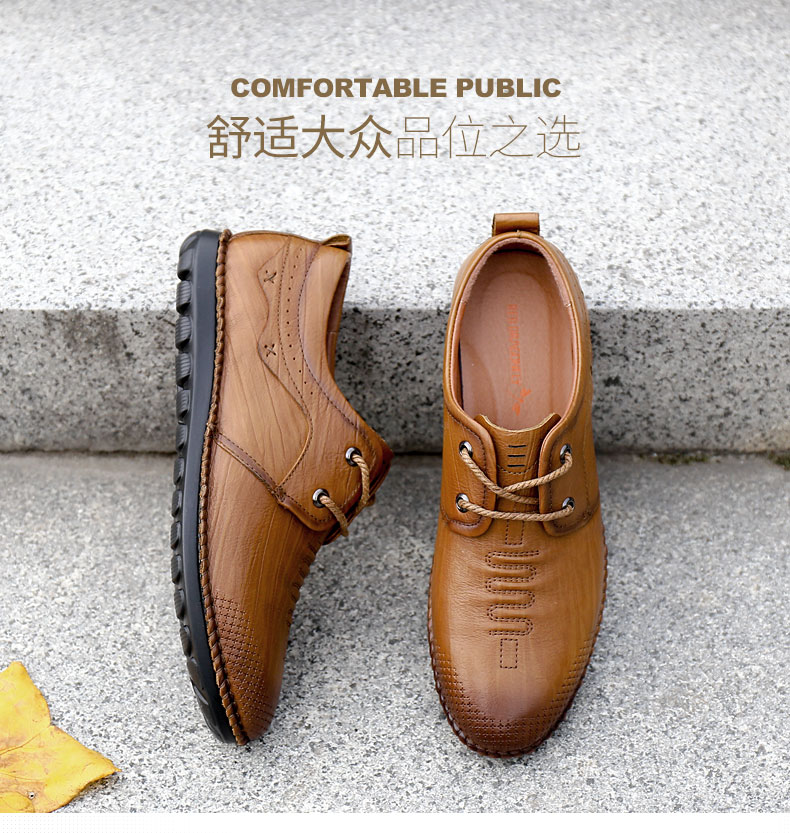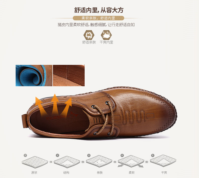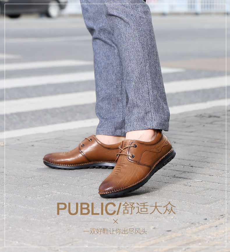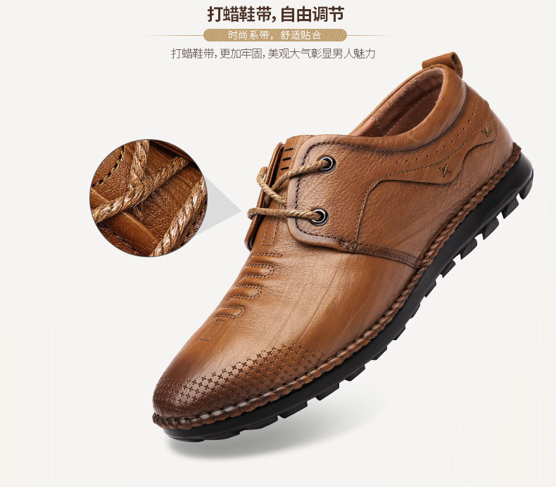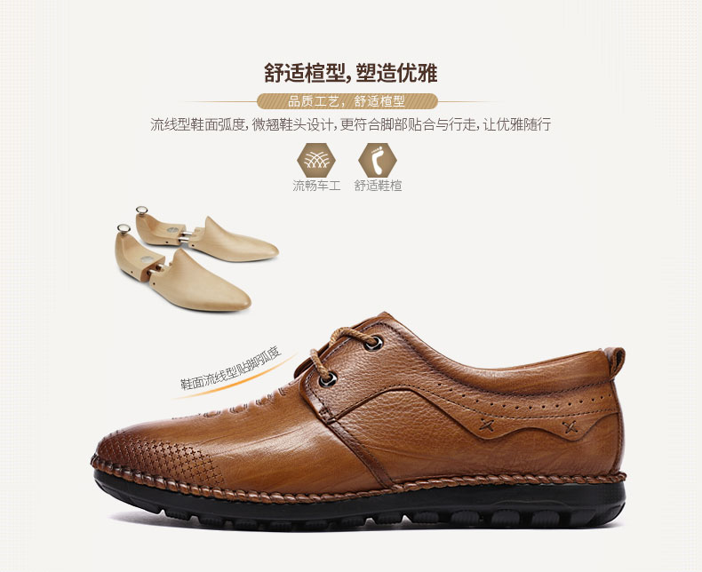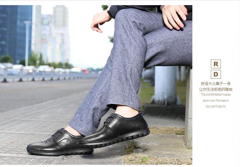 商品名称:红蜻蜓 男鞋新款潮流英伦透气皮鞋男真皮软底商务休闲系带鞋