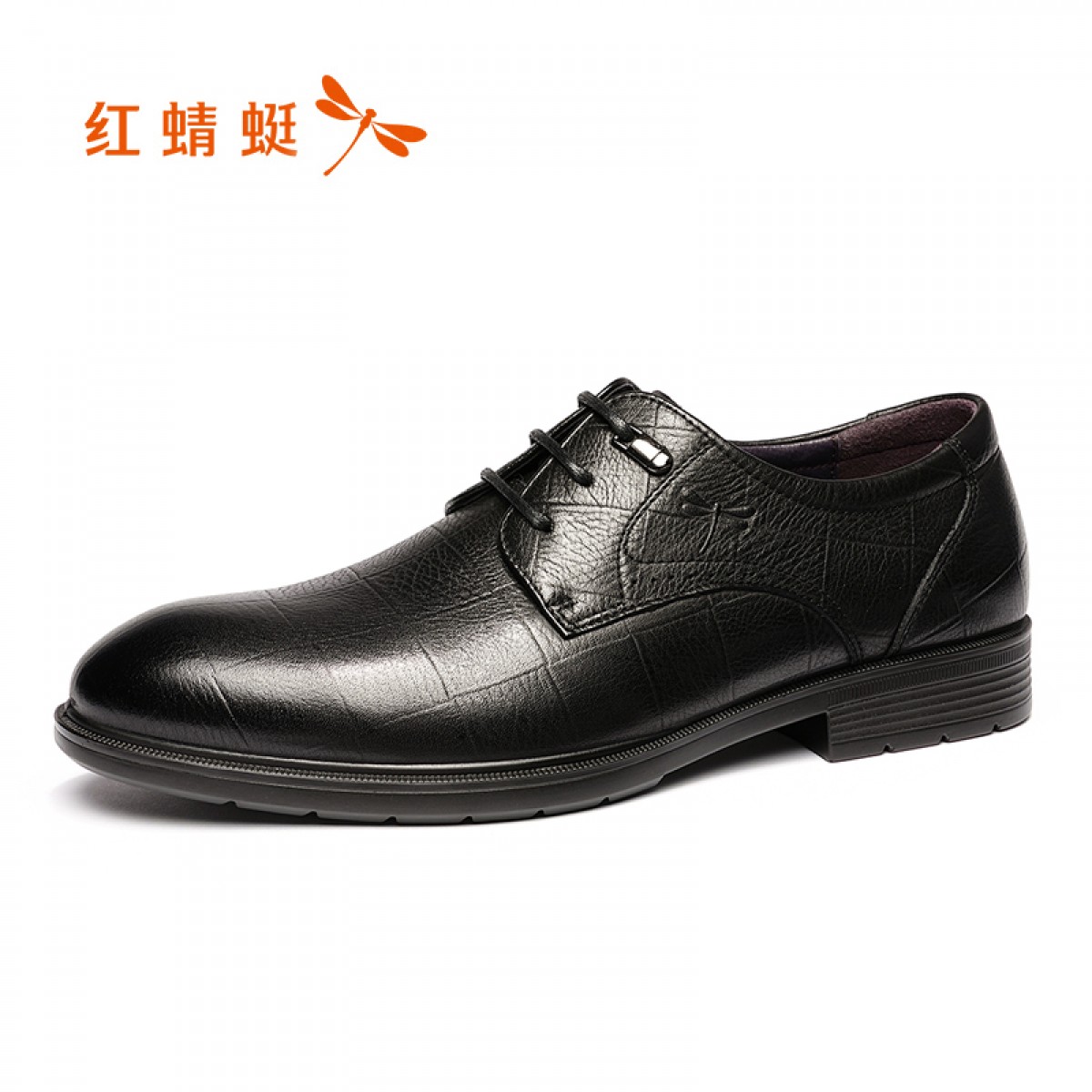 红蜻蜓 真皮鞋秋新品办公商务休闲皮鞋男工作鞋压花牛皮鞋
