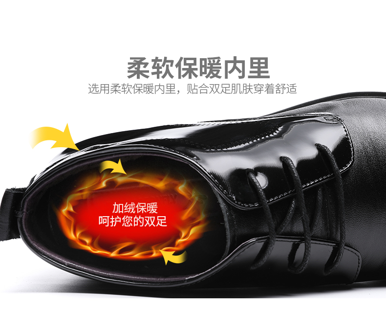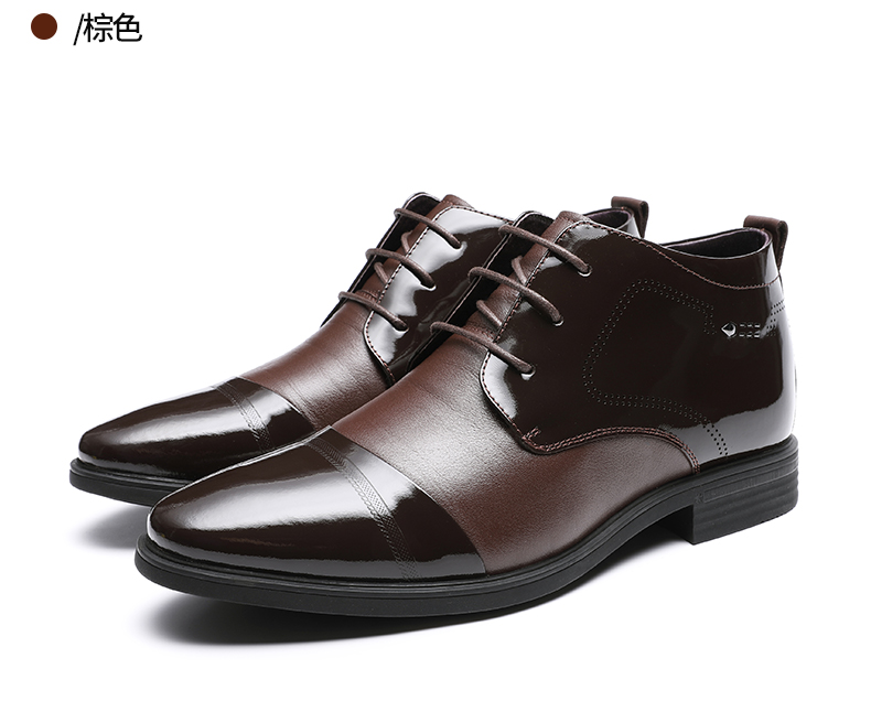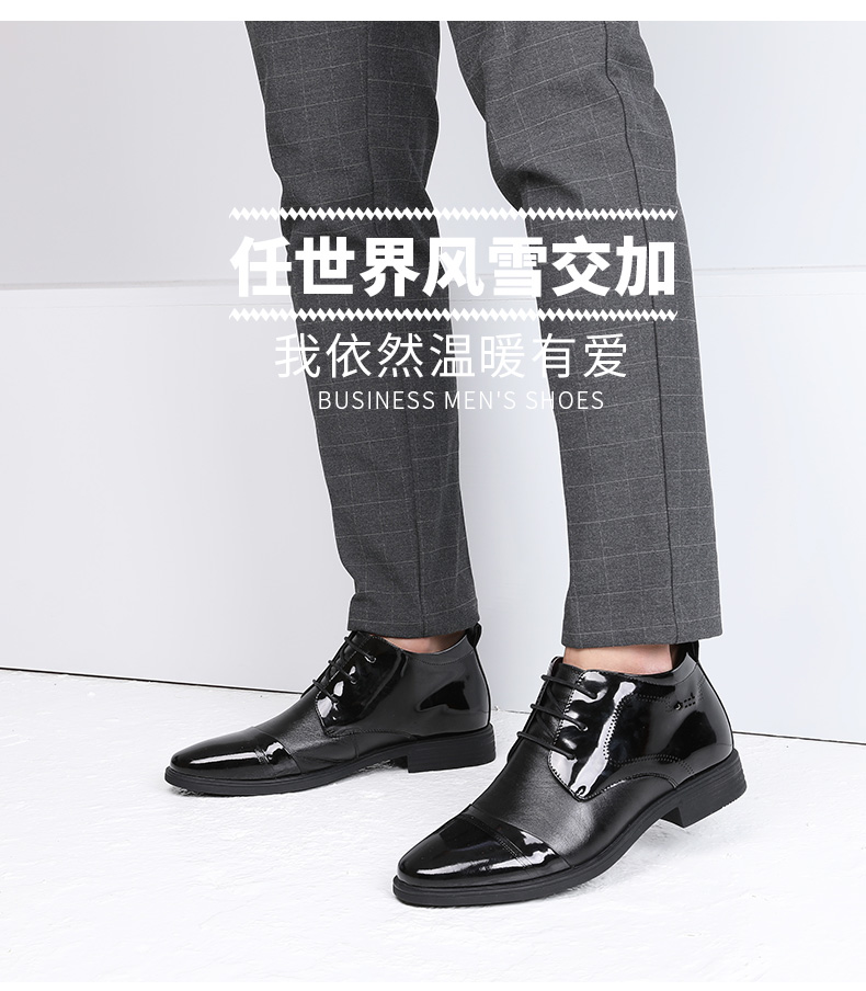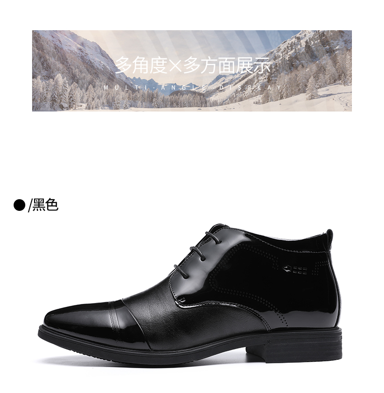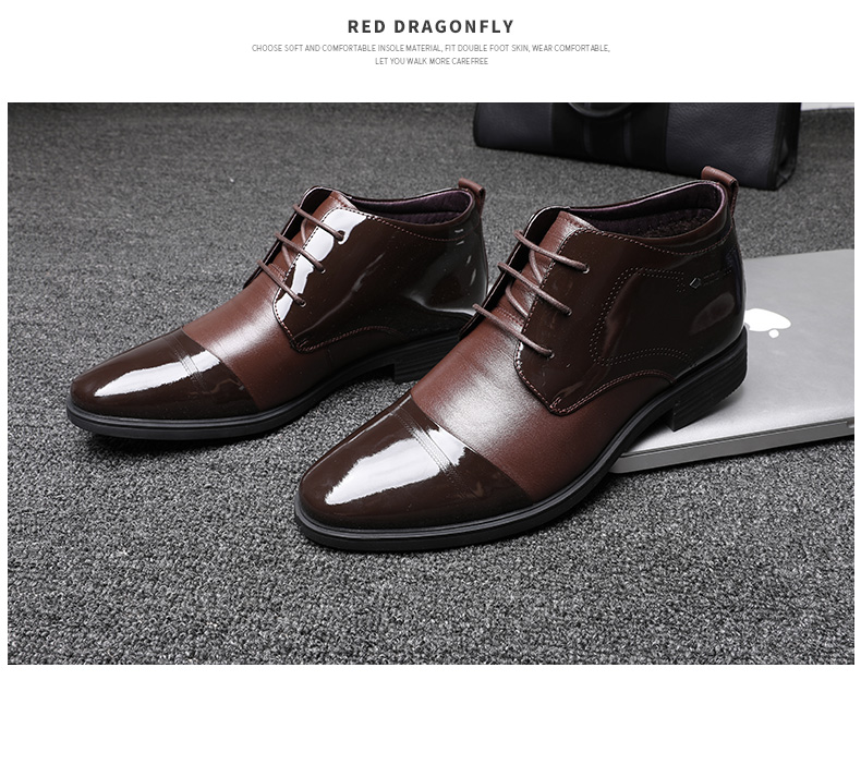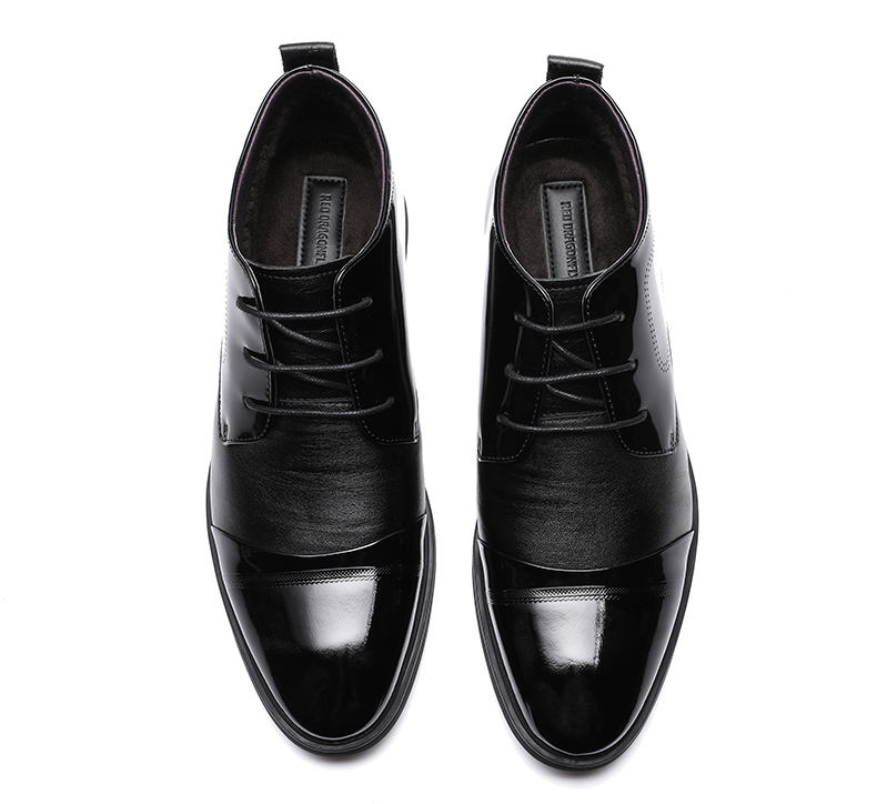 商品名称:红蜻蜓 商务正装高帮皮鞋男冬季新品真皮系带保暖加绒漆皮男靴