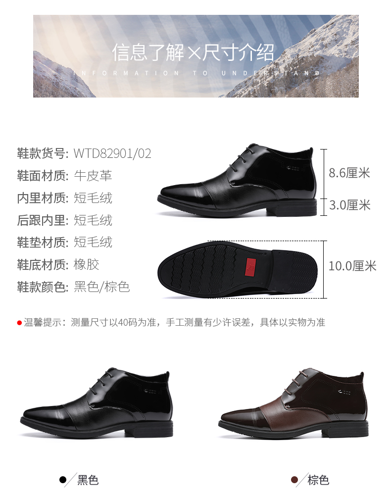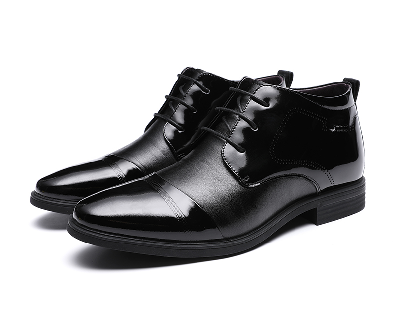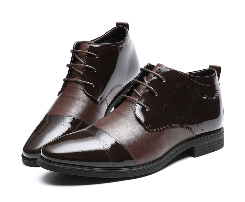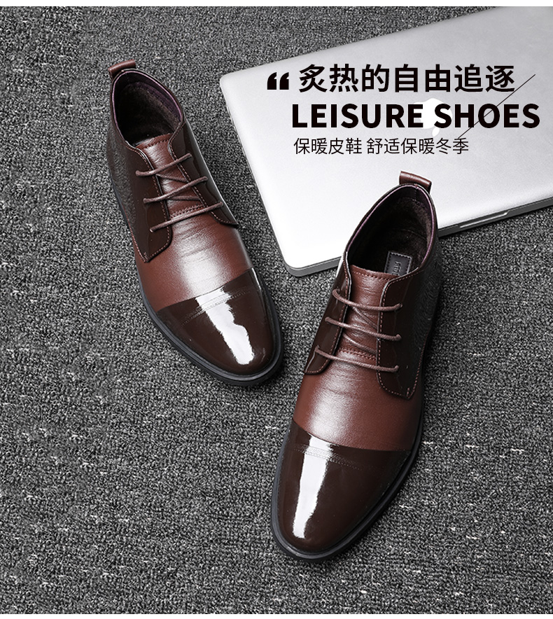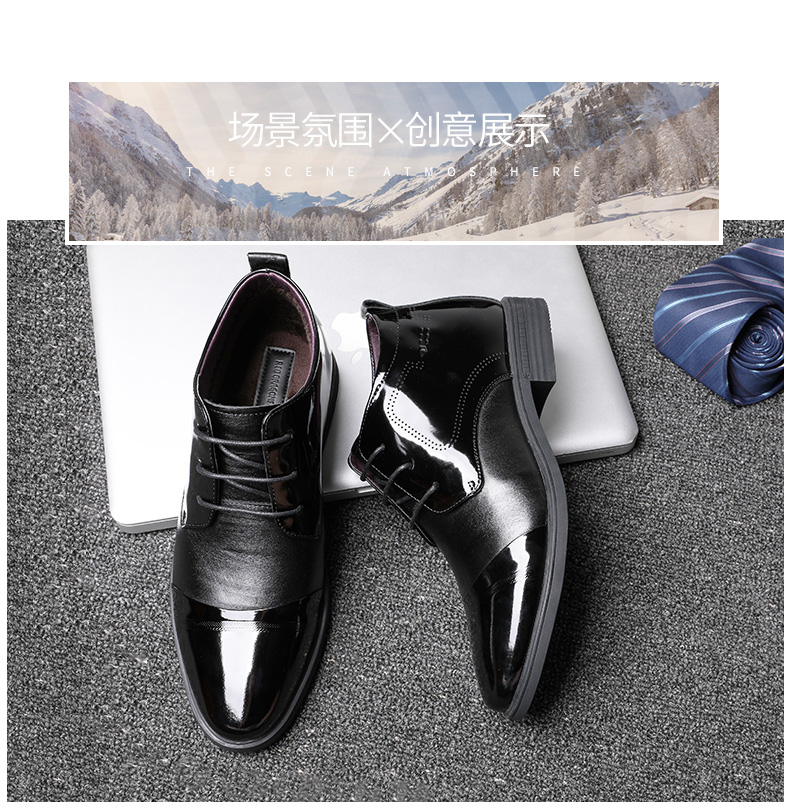 商品名称:红蜻蜓 商务正装高帮皮鞋男冬季新品真皮系带保暖加绒漆皮男靴