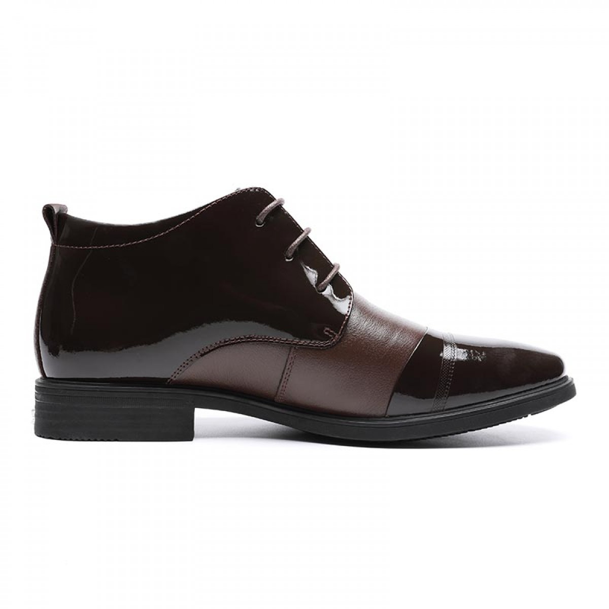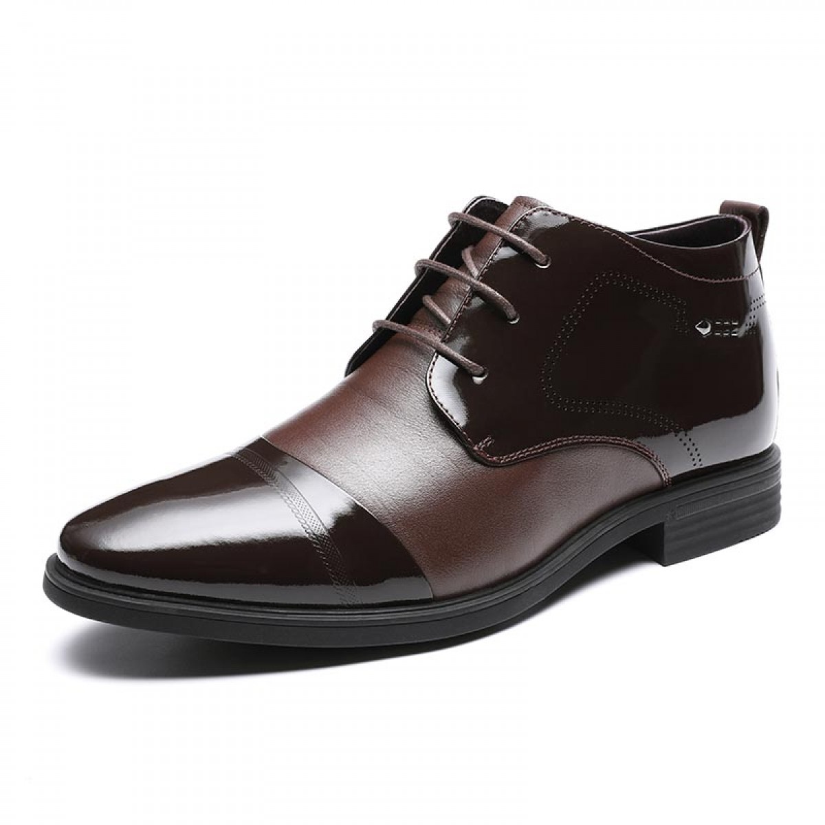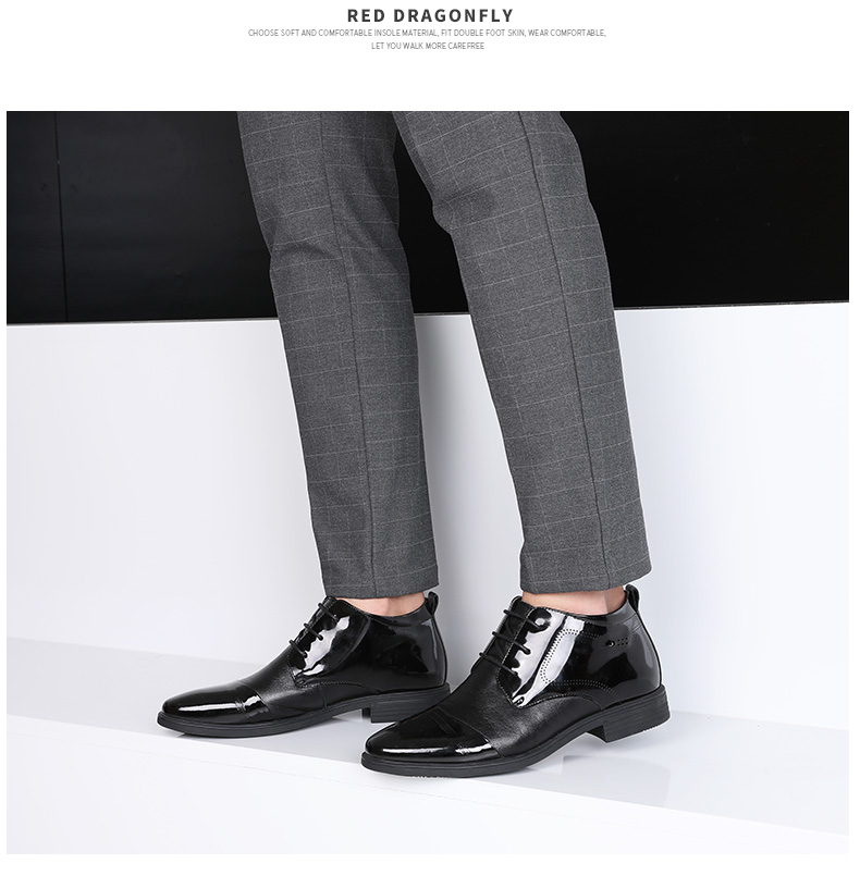 红蜻蜓 商务正装高帮皮鞋男冬季新品真皮系带保暖加绒漆皮男靴
