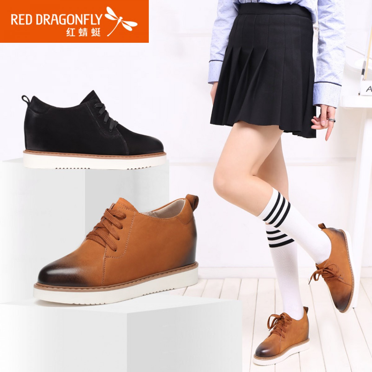 商品名称:红蜻蜓 女鞋新款内增高高帮皮鞋女休闲圆头学院女单鞋