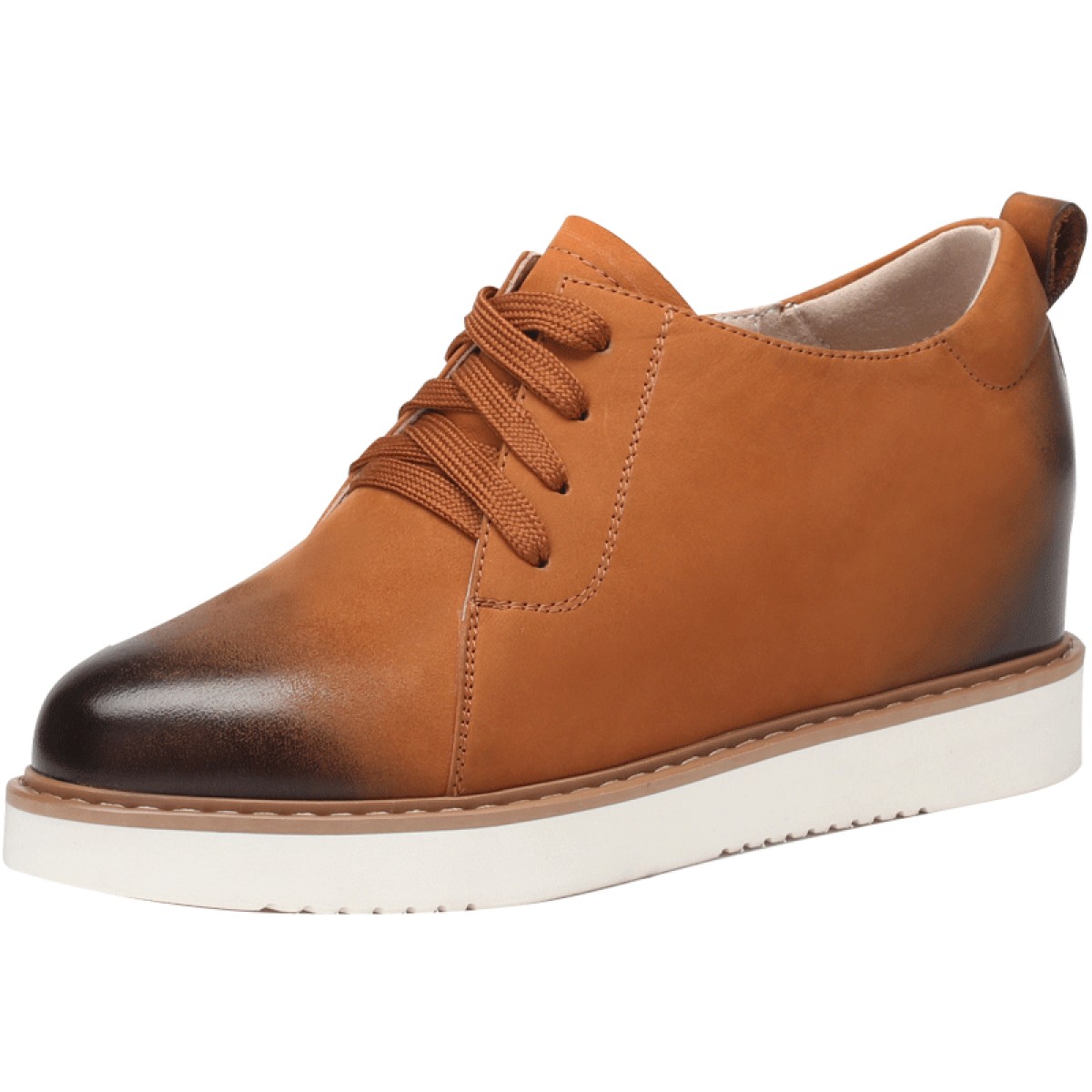 红蜻蜓 女鞋新款内增高高帮皮鞋女休闲圆头学院女单鞋