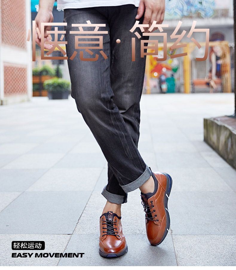 红蜻蜓 真皮男鞋春季耐磨低帮系带男皮鞋日常驾车休闲鞋男