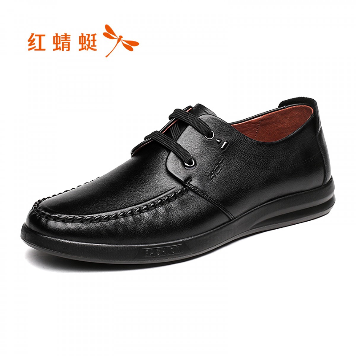红蜻蜓 春季新款时尚真皮软底耐磨休闲鞋子皮鞋系带